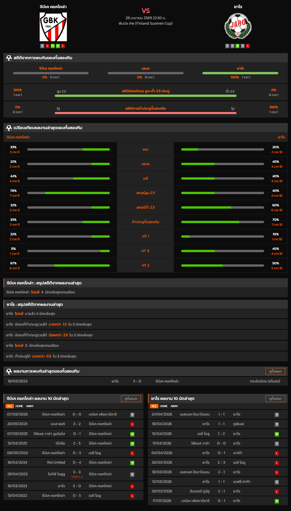วิเคราะห์บอล ฟินแลนด์ คัพ 2025-26 จีบีเค คอคโคล่า VS ยาโร
