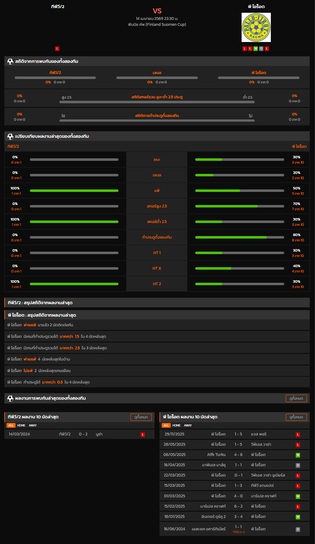 วิเคราะห์บอล ฟินแลนด์ คัพ 2025-26 ทีพีวี/2 VS พี ไอร็อต