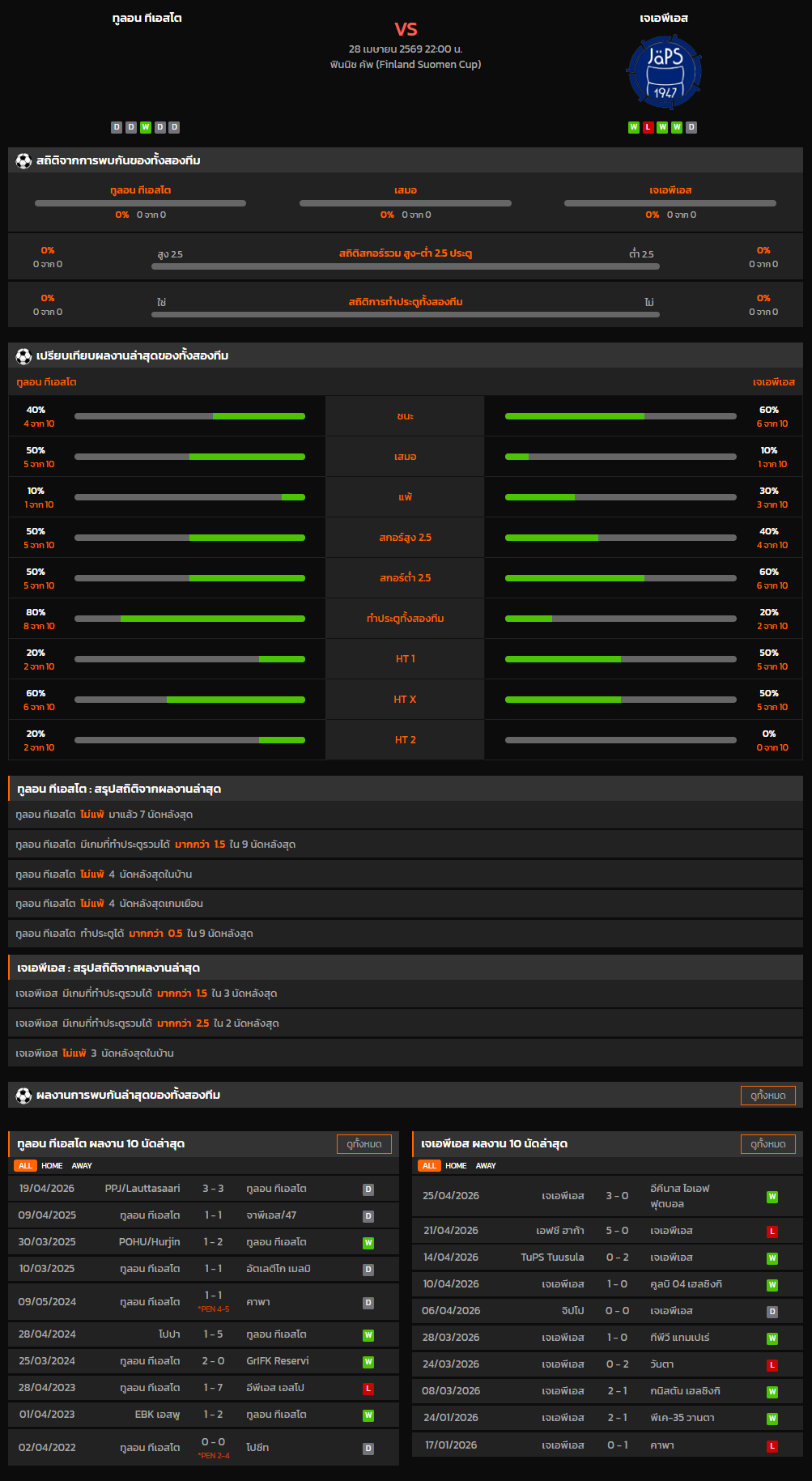 วิเคราะห์บอล ฟินแลนด์ คัพ 2025-26 ทูลอน ทีเอสโต VS เจเอพีเอส