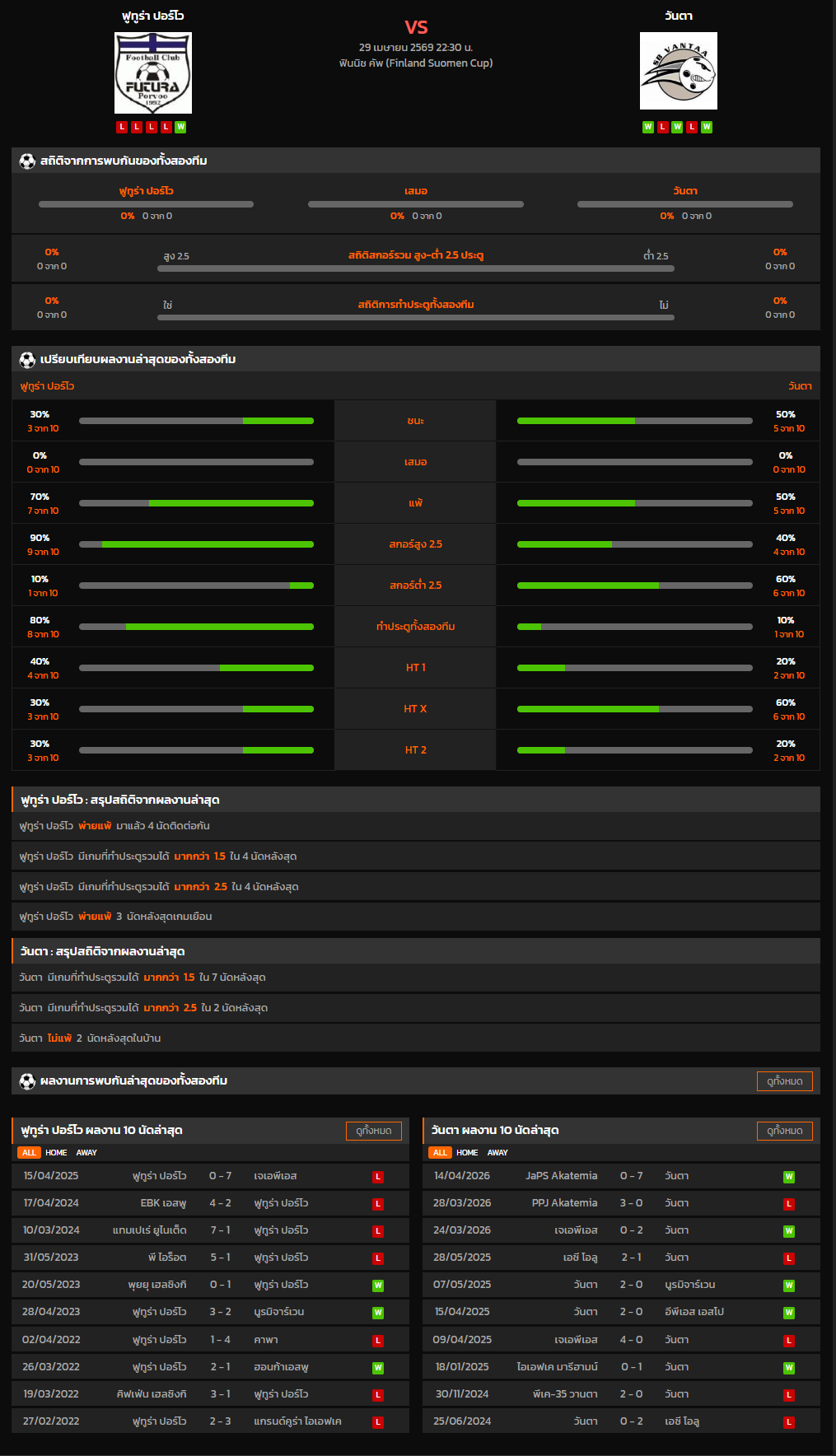 วิเคราะห์บอล ฟินแลนด์ คัพ 2025-26 ฟูทูร่า ปอร์โว VS วันตา