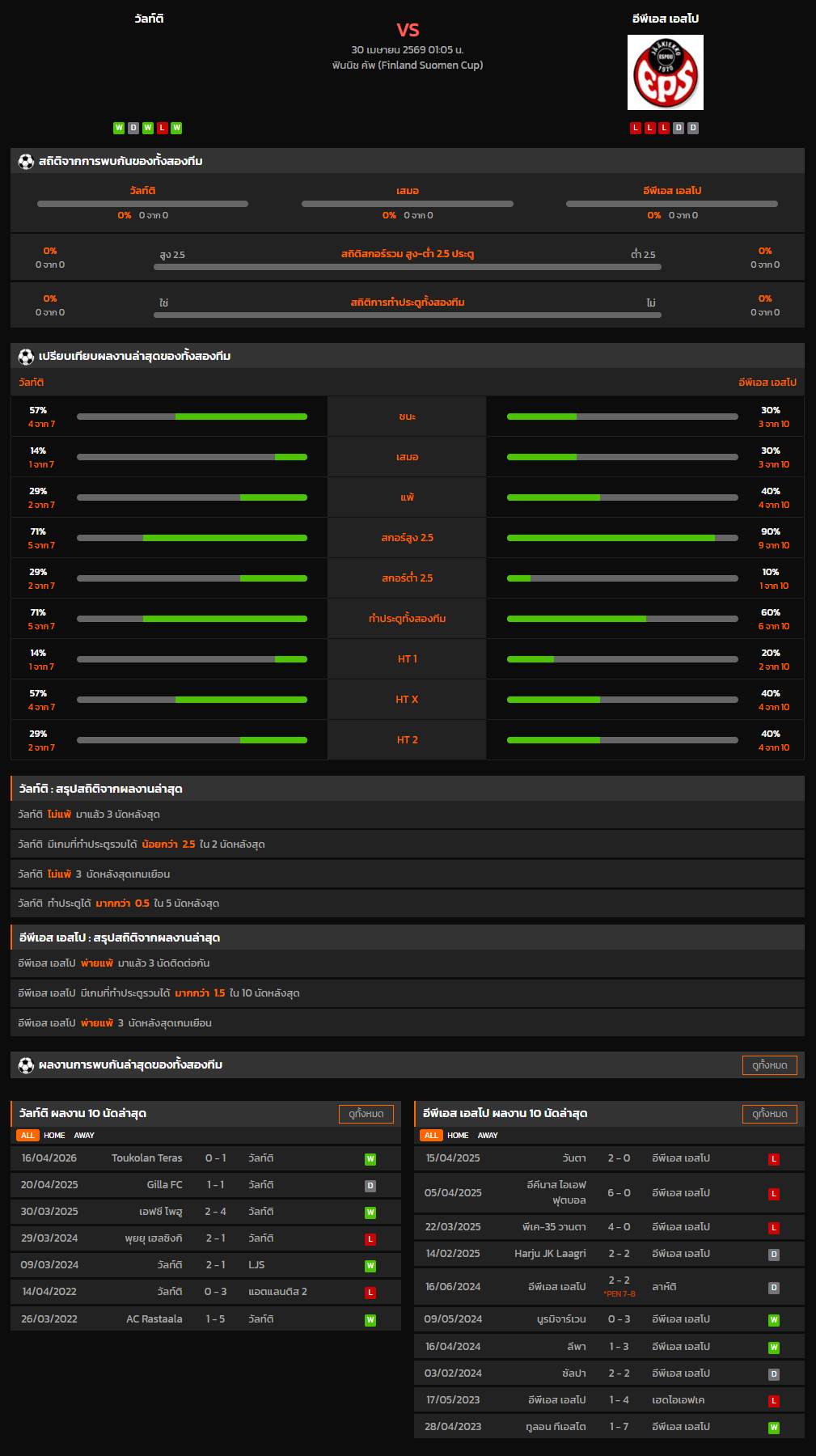 วิเคราะห์บอล ฟินแลนด์ คัพ 2025-26 วัลท์ติ VS อีพีเอส เอสโป