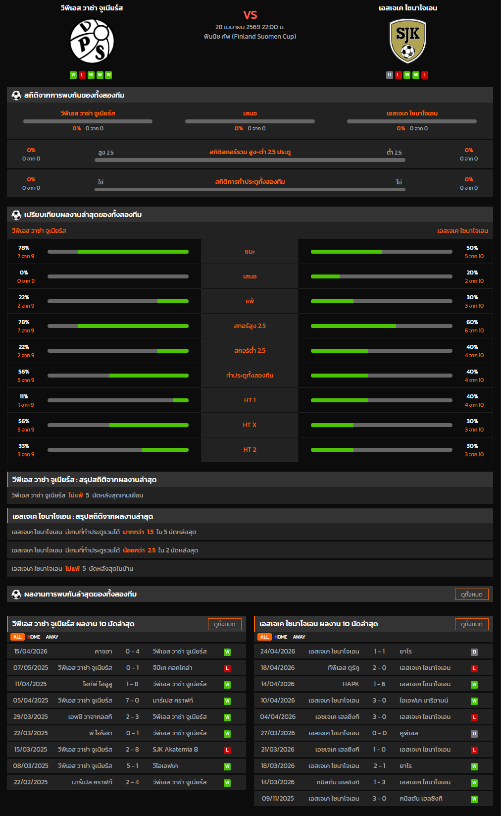 วิเคราะห์บอล ฟินแลนด์ คัพ 2025-26 วีพีเอส วาซ่า จูเนียร์ส VS เอสเจเค ไซนาโจเอน