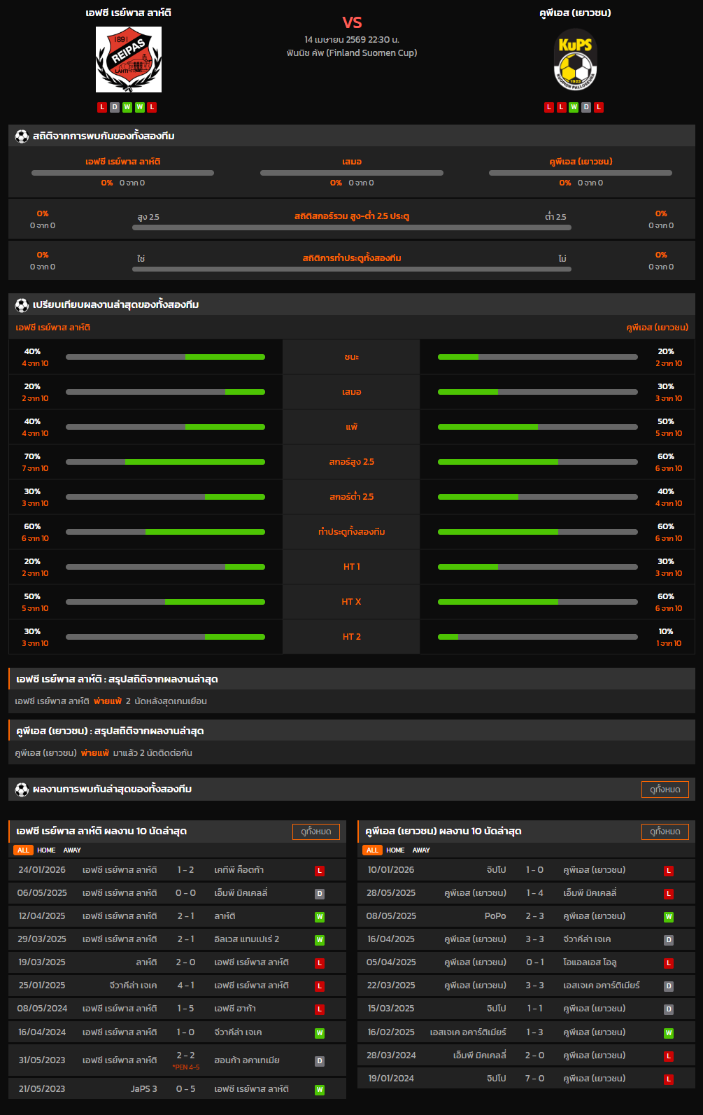 วิเคราะห์บอล ฟินแลนด์ คัพ 2025-26 เอฟซี เรย์พาส ลาห์ติ VS คูพีเอส (เยาวชน)