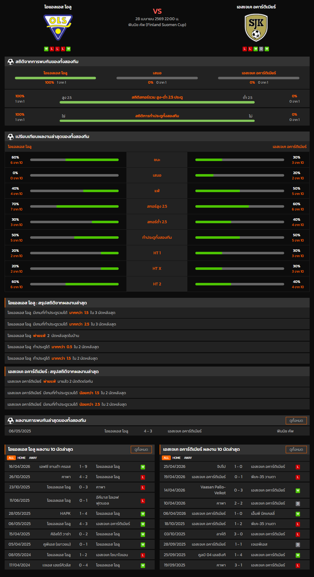 วิเคราะห์บอล ฟินแลนด์ คัพ 2025-26 โอแอลเอส โอลู VS เอสเจเค อคาร์ติเมียร์