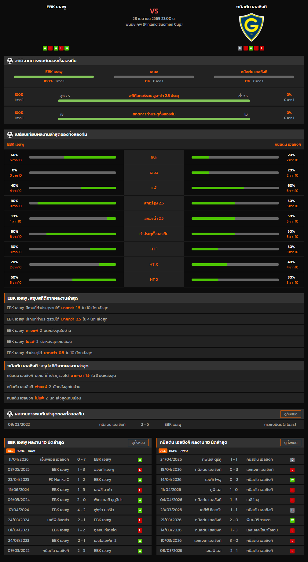 วิเคราะห์บอล ฟินแลนด์ คัพ 2025-26 EBK เอสพู VS กนิสตัน เฮลซิงกิ