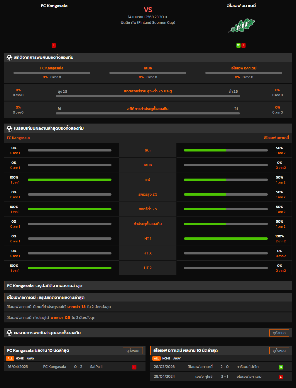 วิเคราะห์บอล ฟินแลนด์ คัพ 2025-26 FC Kangasala VS อีไอเอฟ อคาเดมี่