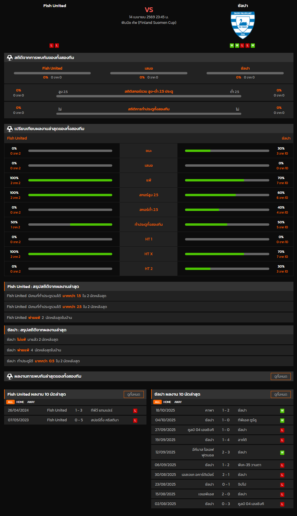 วิเคราะห์บอล ฟินแลนด์ คัพ 2025-26 Fish United VS ซัลปา