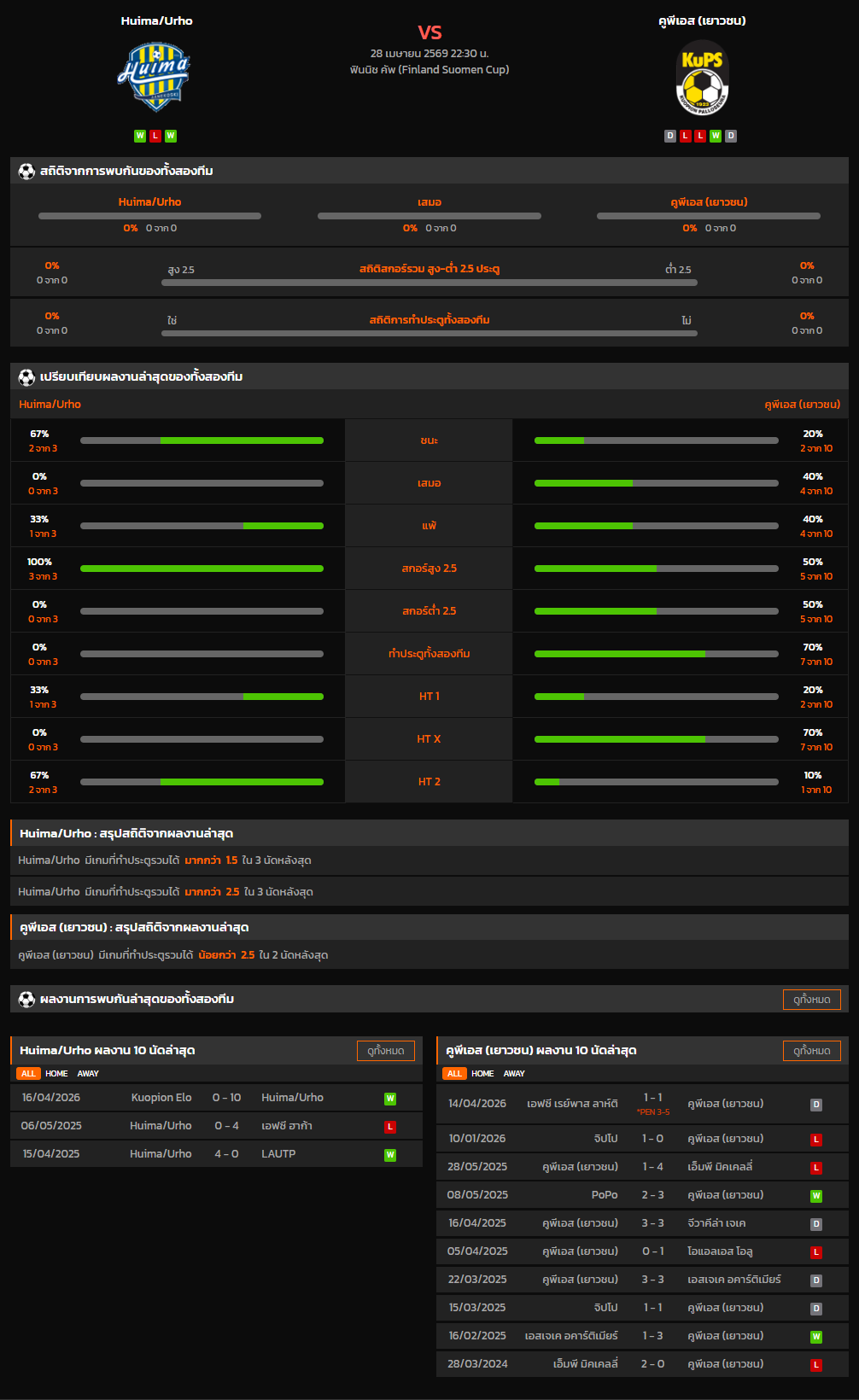 วิเคราะห์บอล ฟินแลนด์ คัพ 2025-26 Huima/Urho VS คูพีเอส (เยาวชน)