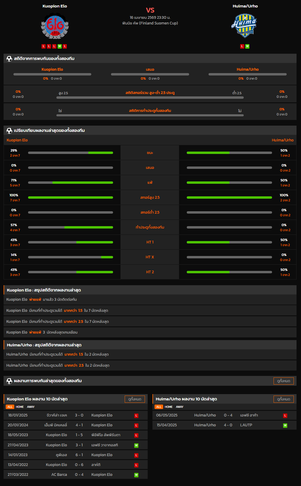 วิเคราะห์บอล ฟินแลนด์ คัพ 2025-26 Kuopion Elo VS Huima Urho
