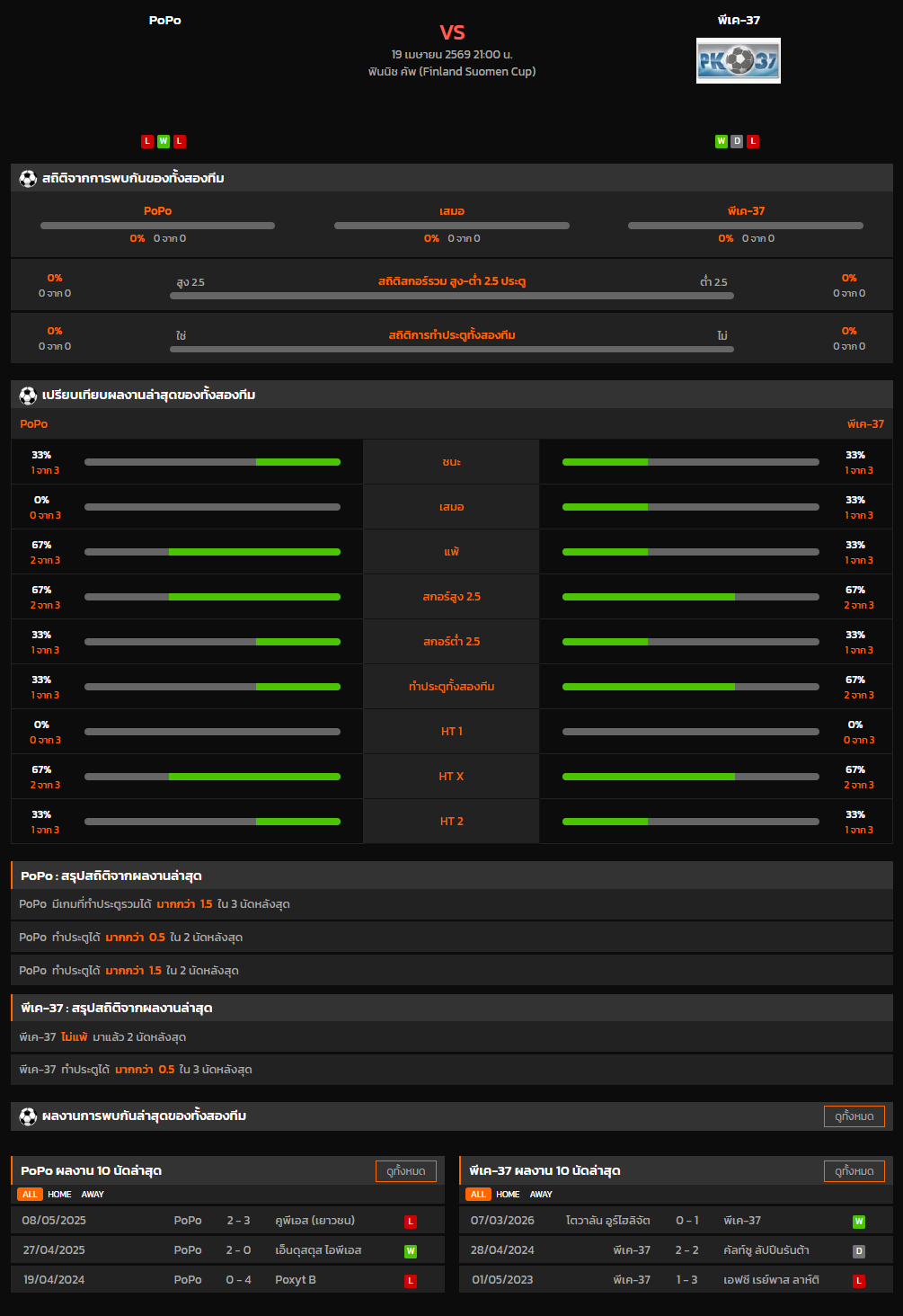 วิเคราะห์บอล ฟินแลนด์ คัพ 2025-26 PoPo VS พีเค-37