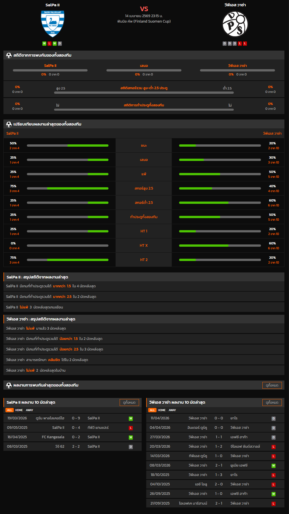 วิเคราะห์บอล ฟินแลนด์ คัพ 2025-26 SalPa II VS วีพีเอส วาซ่า