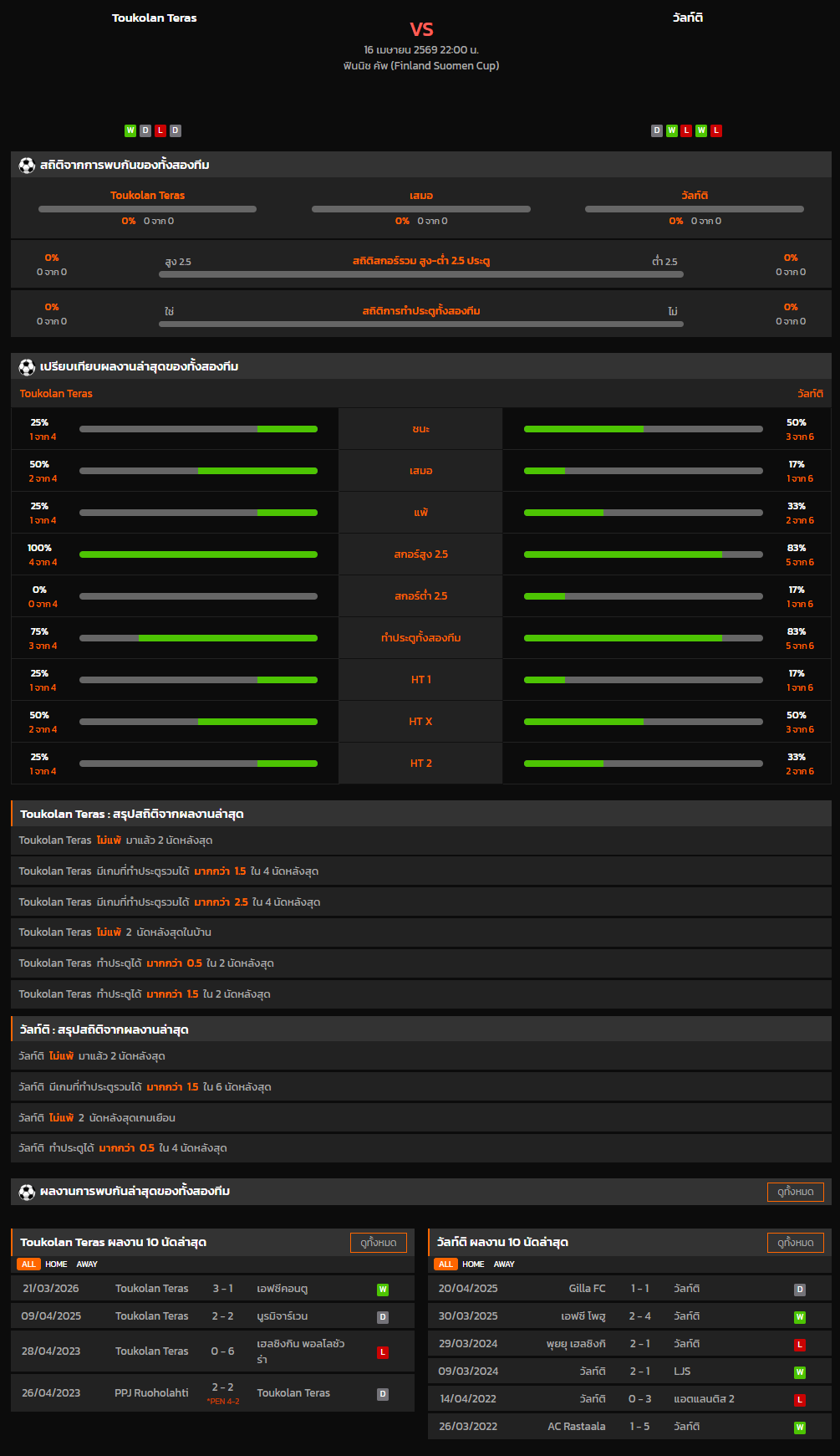 วิเคราะห์บอล ฟินแลนด์ คัพ 2025-26 Toukolan Teras VS วัลท์ติ