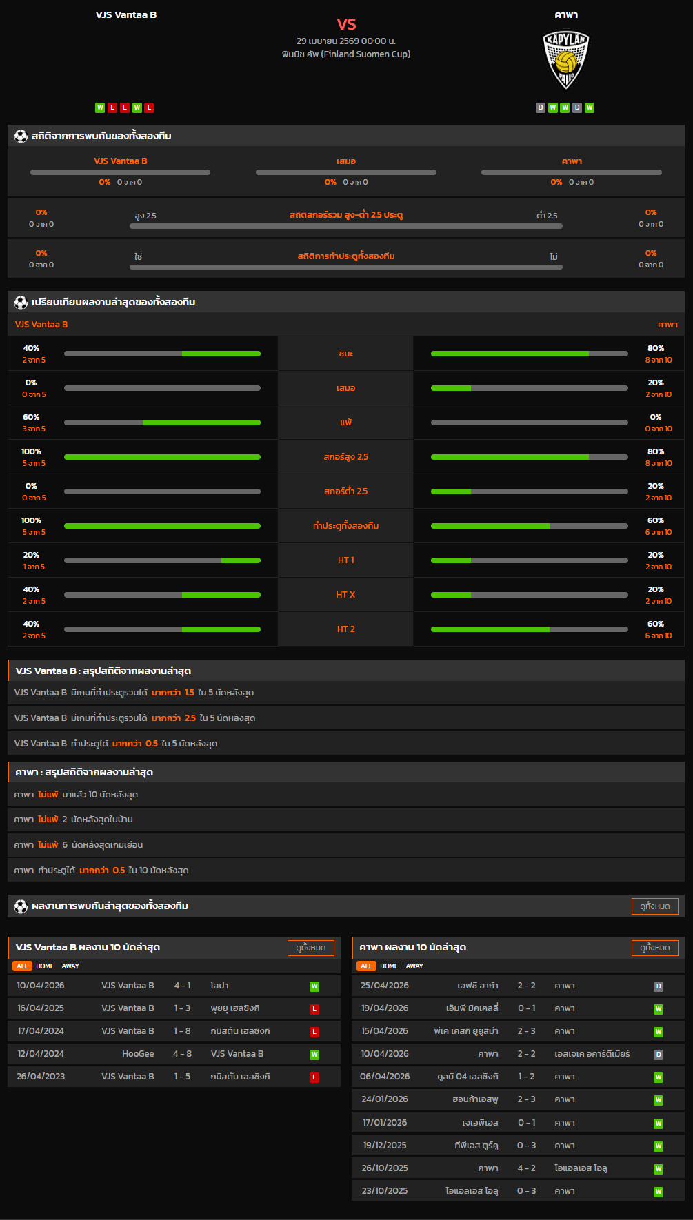 วิเคราะห์บอล ฟินแลนด์ คัพ 2025-26 VJS Vantaa B VS คาพา