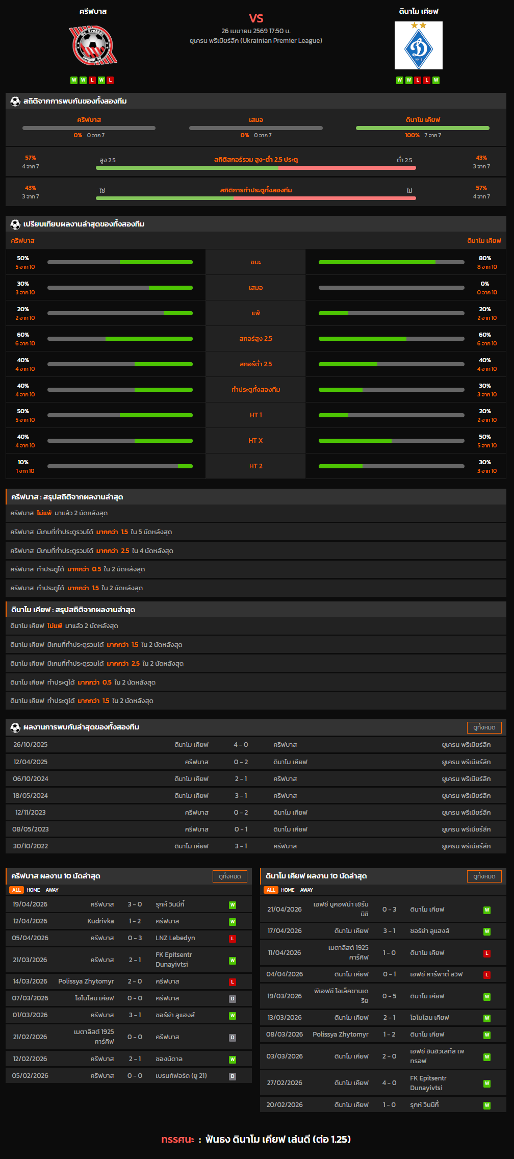 วิเคราะห์บอล ยูเครน พรีเมียร์ลีก 2025-26 ครีฟบาส VS ดินาโม เคียฟ