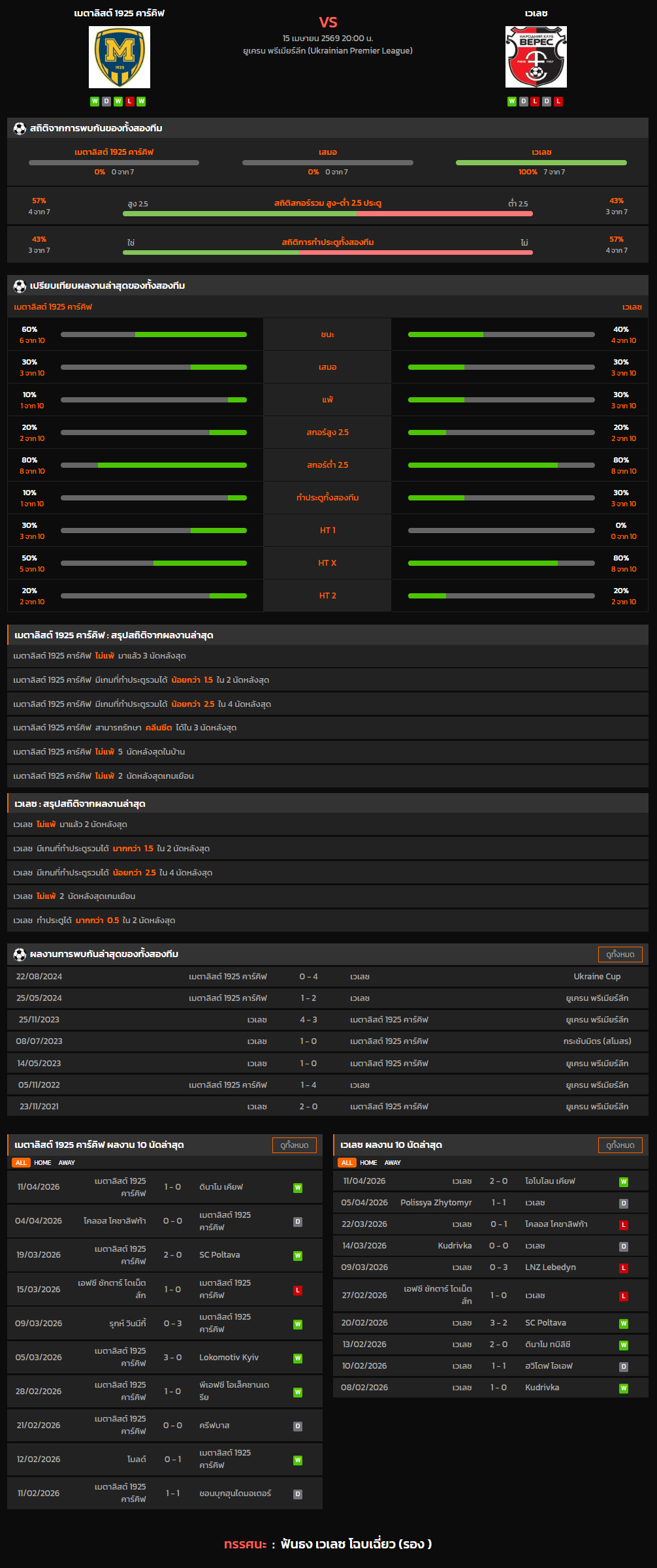 วิเคราะห์บอล ยูเครน พรีเมียร์ลีก 2025-26 เมตาลิสต์ 1925 คาร์คิฟ VS เวเลซ