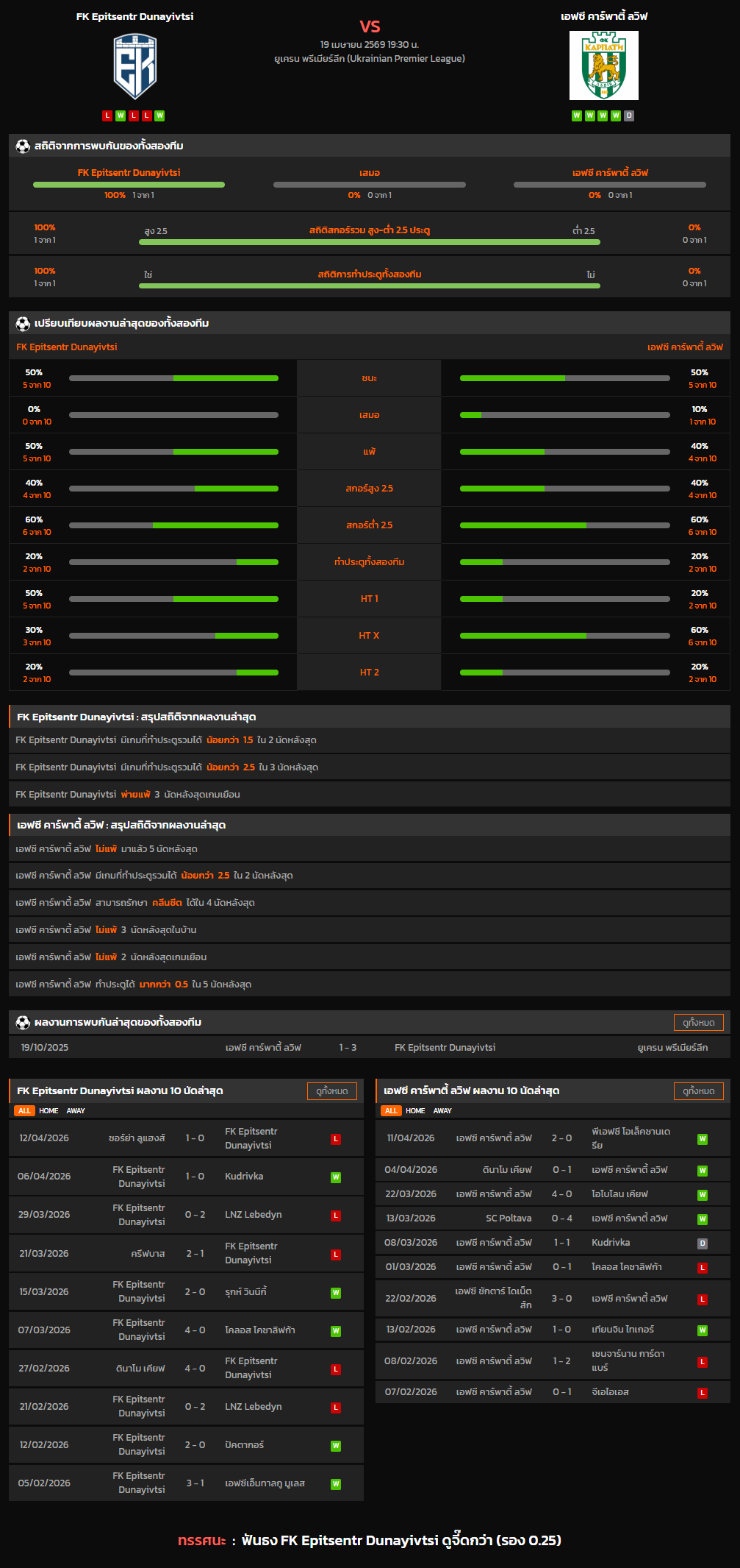 วิเคราะห์บอล ยูเครน พรีเมียร์ลีก 2025-26 FK Epitsentr Dunayivtsi VS เอฟซี คาร์พาตี้ ลวิฟ