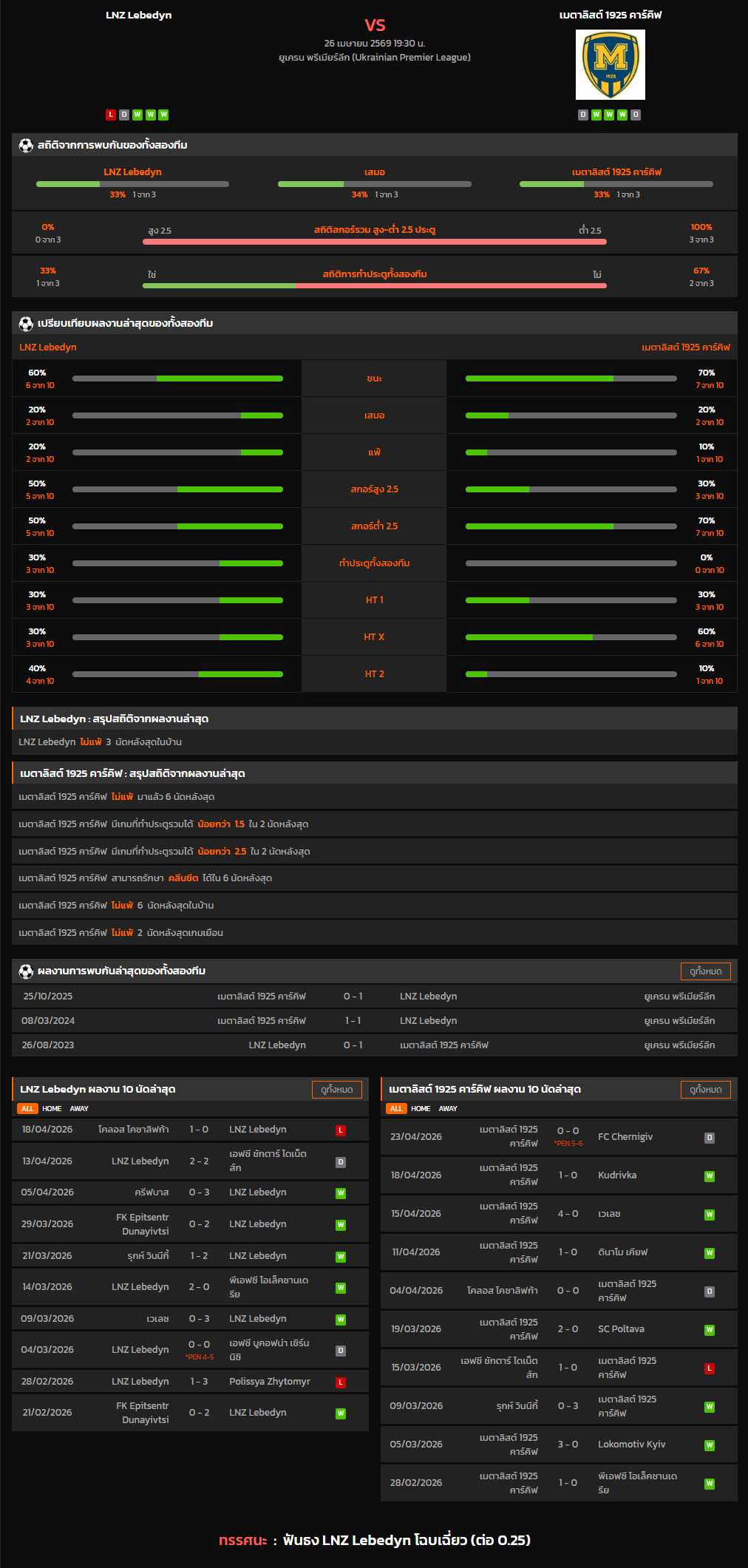 วิเคราะห์บอล ยูเครน พรีเมียร์ลีก 2025-26 LNZ Lebedyn VS เมตาลิสต์ 1925 คาร์คิฟ
