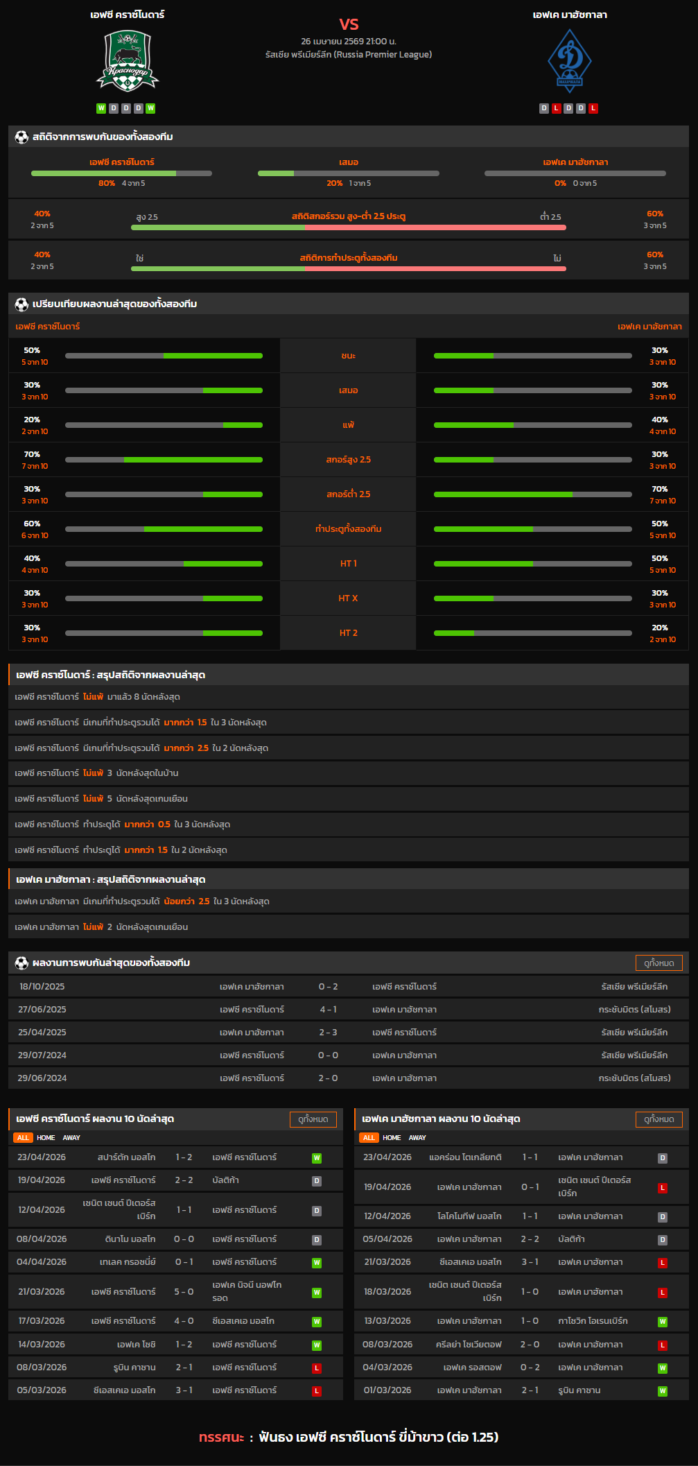 วิเคราะห์บอล รัสเซีย พรีเมียร์ลีก 2025-26 เอฟซี คราซ์โนดาร์ VS เอฟเค มาฮัชกาลา