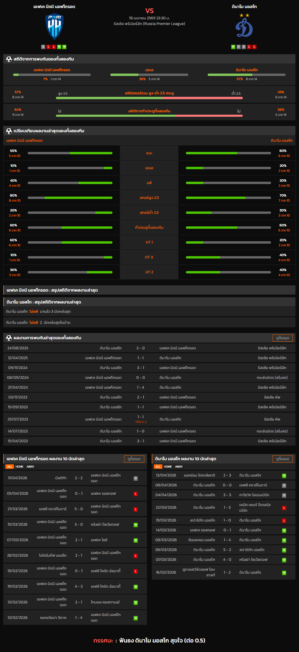 วิเคราะห์บอล รัสเซีย พรีเมียร์ลีก 2025-26 เอฟเค นิจนี นอฟโกรอด VS ดินาโม มอสโก