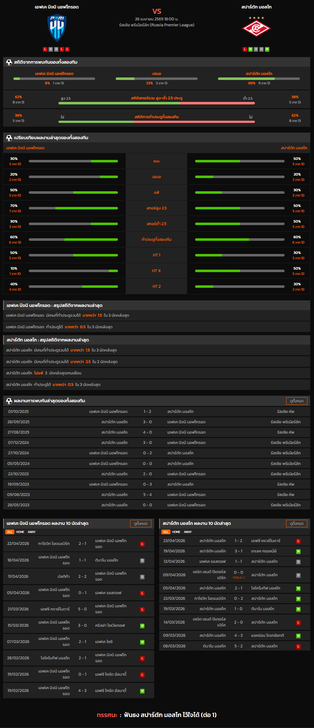 วิเคราะห์บอล รัสเซีย พรีเมียร์ลีก 2025-26 เอฟเค นิจนี นอฟโกรอด VS สปาร์ตัก มอสโก