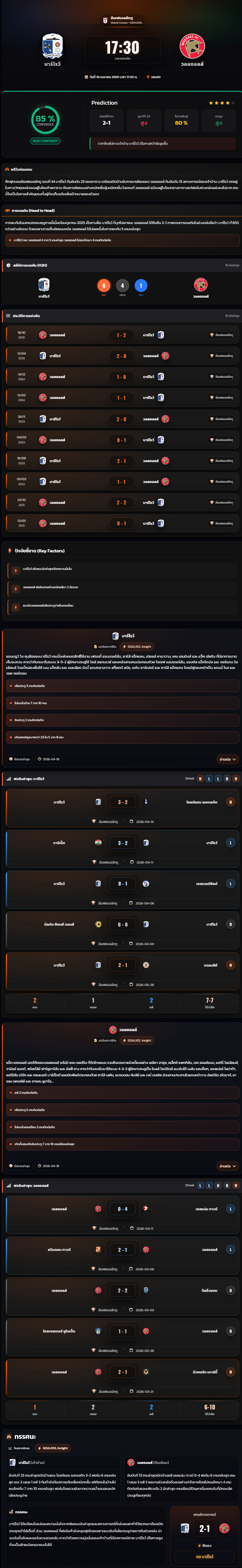 วิเคราะห์บอล ลีกทู อังกฤษ 2025-26 บาร์โรว์ vs วอลซอลล์