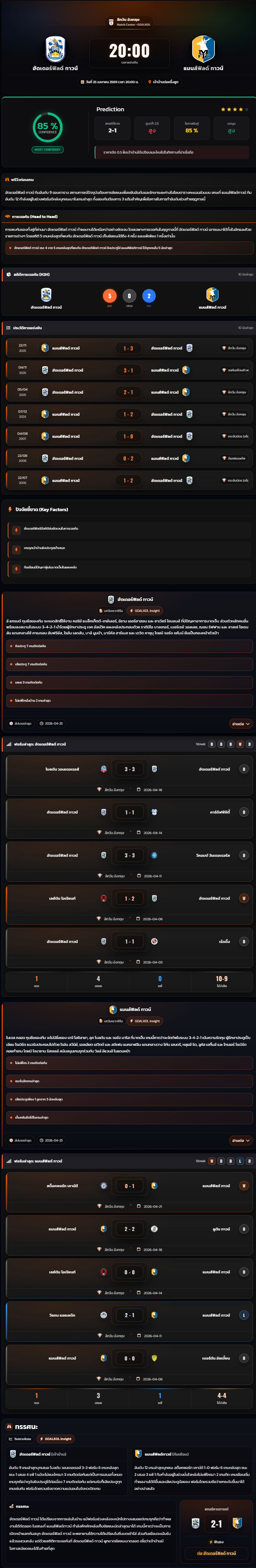 วิเคราะห์บอล ลีกวัน อังกฤษ 2025-26 ฮัดเดอร์ฟิลด์ ทาวน์ vs แมนส์ฟิลด์ ทาวน์