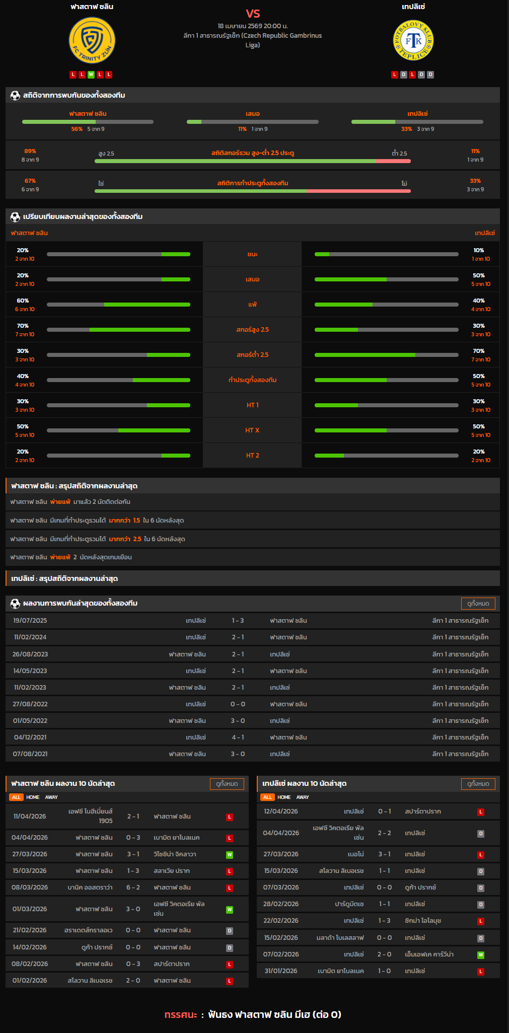 วิเคราะห์บอล ลีกา 1 สาธารณรัฐเช็ก 2025-26 ฟาสตาฟ ซลิน VS เทปลิเซ่
