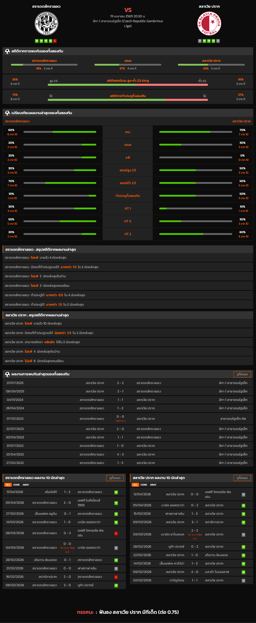 วิเคราะห์บอล ลีกา 1 สาธารณรัฐเช็ก 2025-26 ฮราเดตส์กราลอเว VS สลาเวีย ปราก