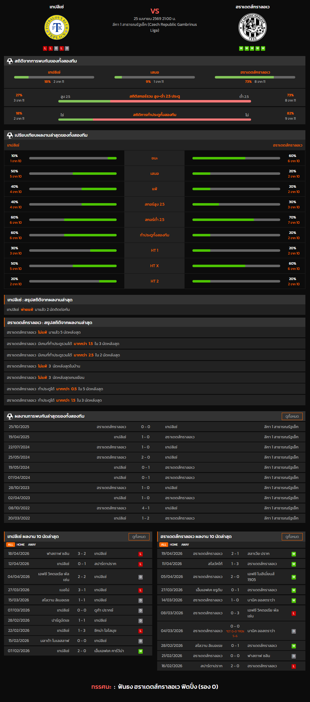 วิเคราะห์บอล ลีกา 1 สาธารณรัฐเช็ก 2025-26 เทปลิเซ่ VS ฮราเดตส์กราลอเว