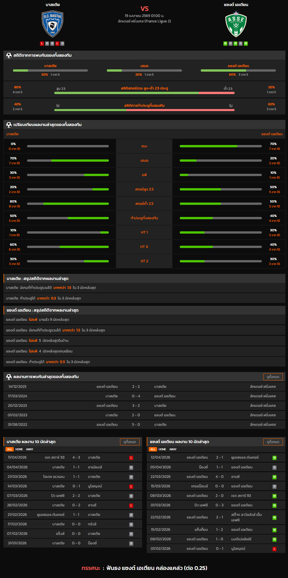 วิเคราะห์บอล ลีกเดอซ์ ฝรั่งเศส 2025-26 บาสเตีย VS แซงต์ เอเตียน