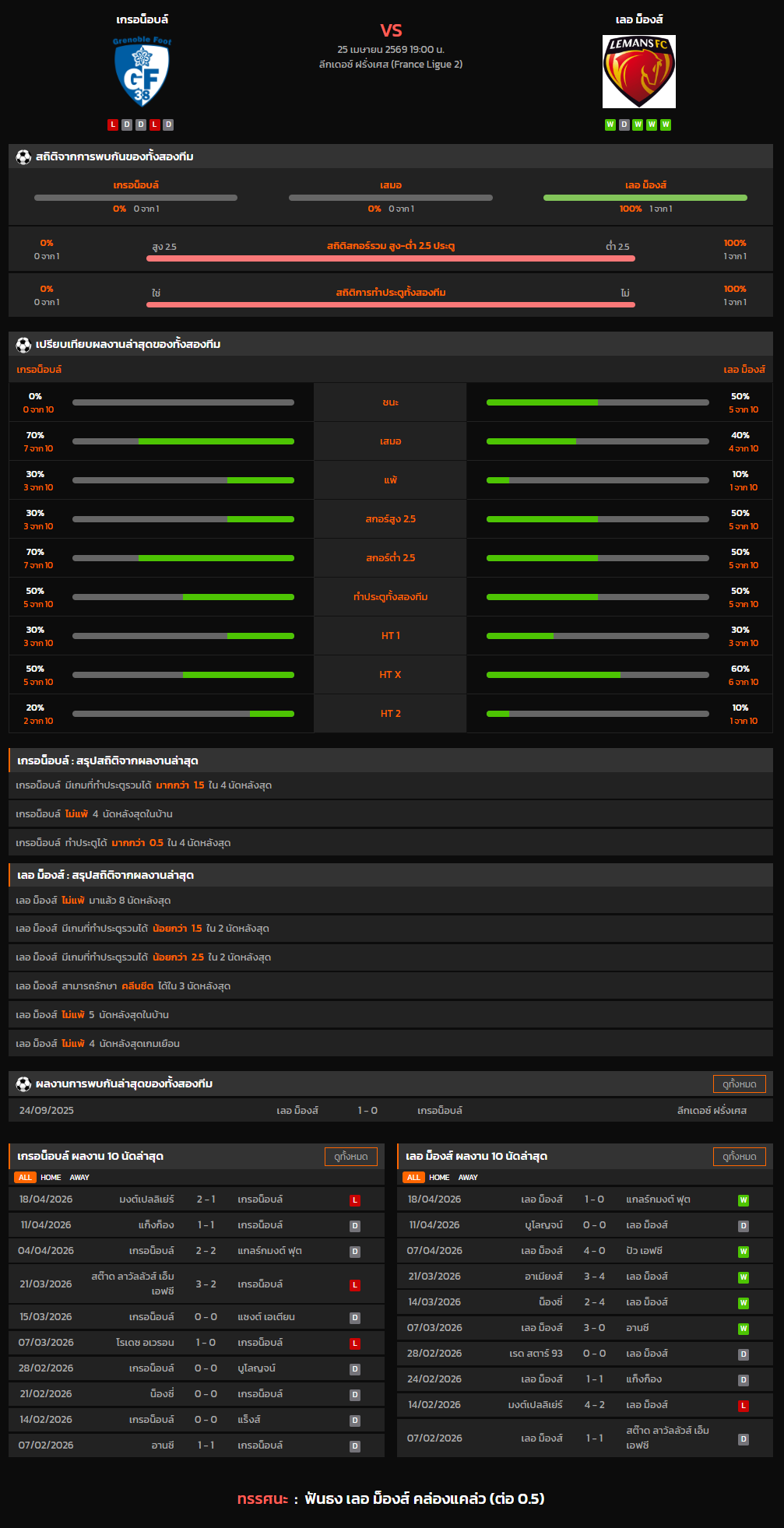 วิเคราะห์บอล ลีกเดอซ์ ฝรั่งเศส 2025-26 เกรอน็อบล์ VS เลอ ม็องส์