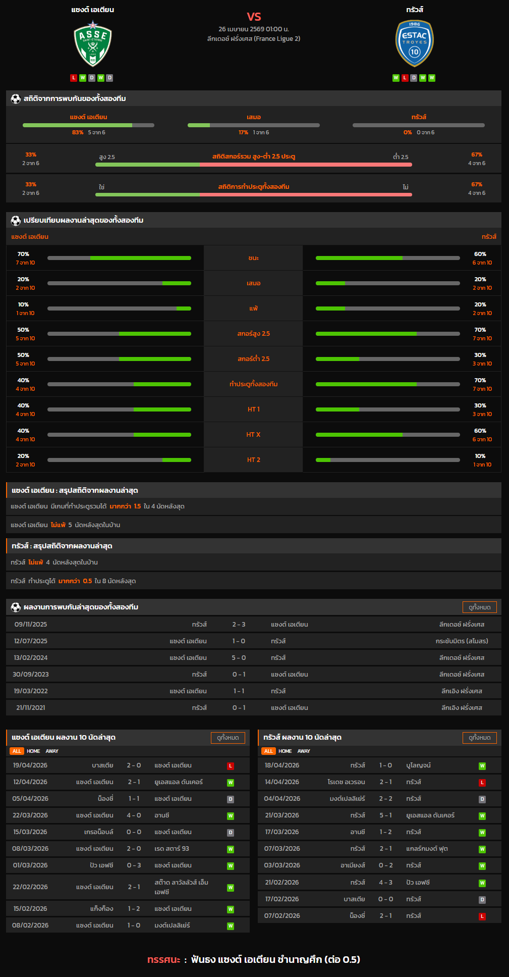 วิเคราะห์บอล ลีกเดอซ์ ฝรั่งเศส 2025-26 แซงต์ เอเตียน VS ทรัวส์