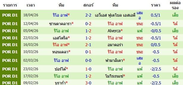 ผลงาน 10 นัดหลังสุดของทีม ริโอ อาฟ