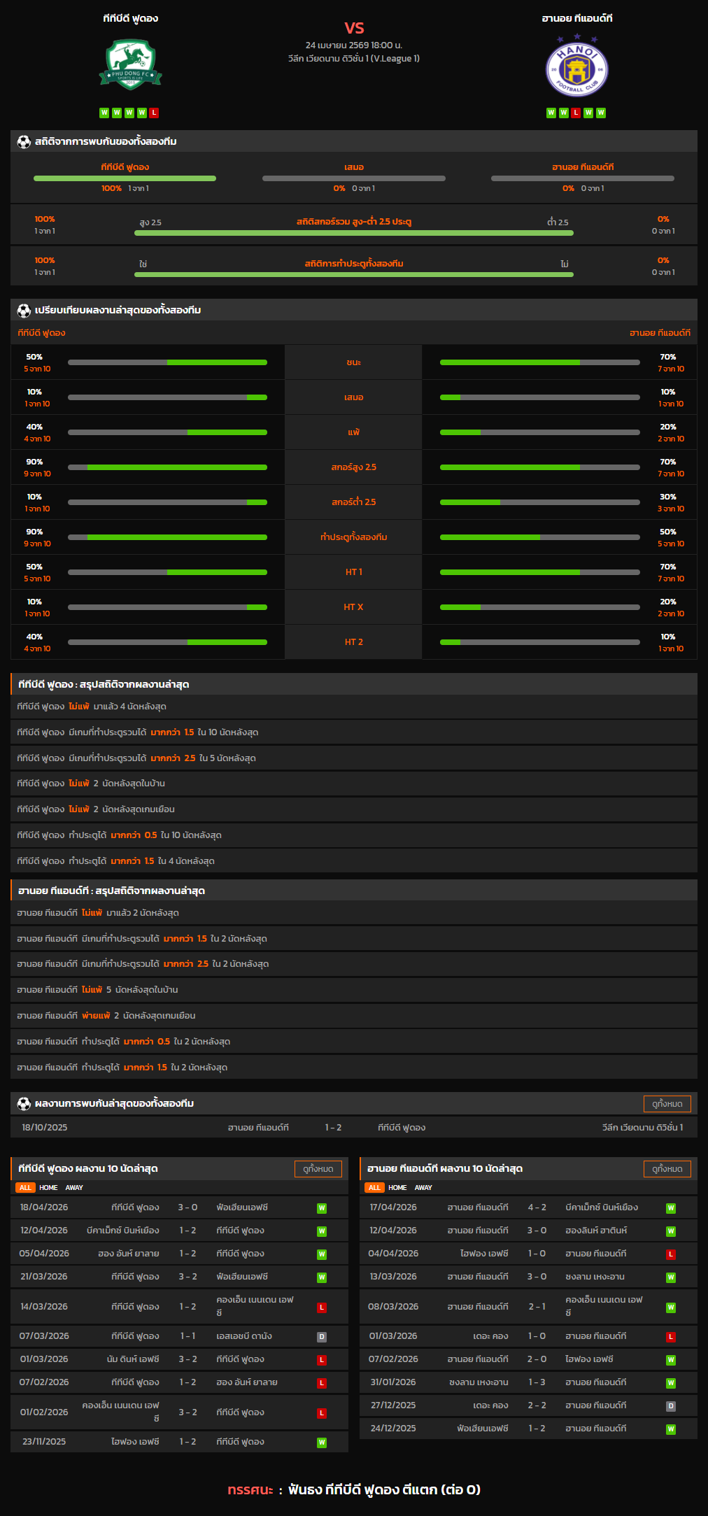 วิเคราะห์บอล วีลีก เวียดนาม ดิวิชั่น 1 2025-26 ทีทีบีดี ฟูดอง VS ฮานอย ทีแอนด์ที