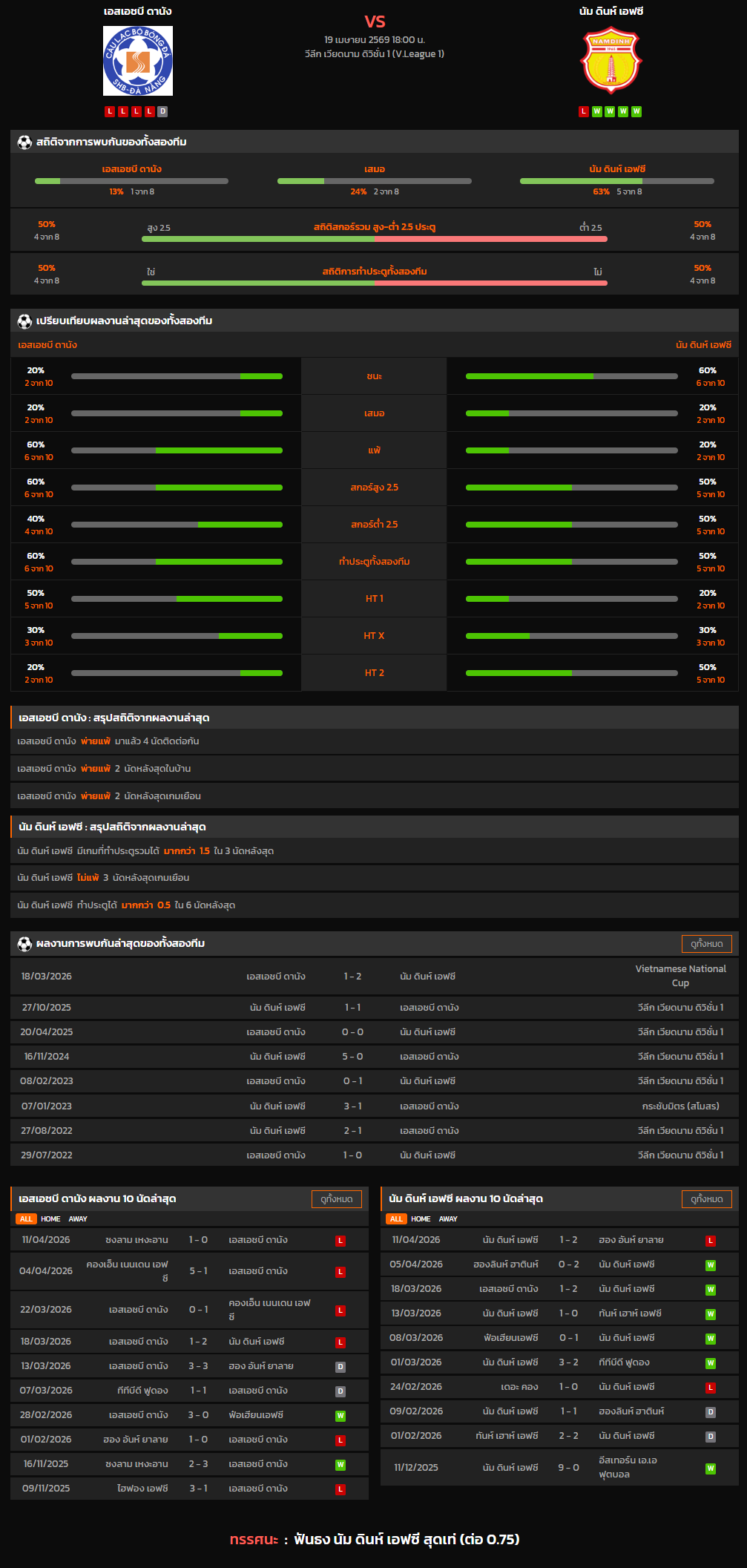วิเคราะห์บอล วีลีก เวียดนาม ดิวิชั่น 1 2025-26 เอสเอชบี ดานัง VS นัม ดินห์ เอฟซี