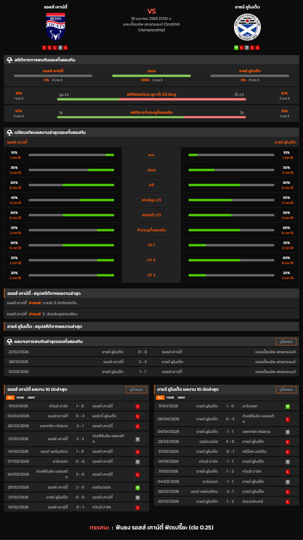 วิเคราะห์บอล สกอตแลนด์ แชมเปี้ยนชิพ 2025-26 รอสส์ เคาน์ตี้ VS อายร์ ยูไนเต็ด