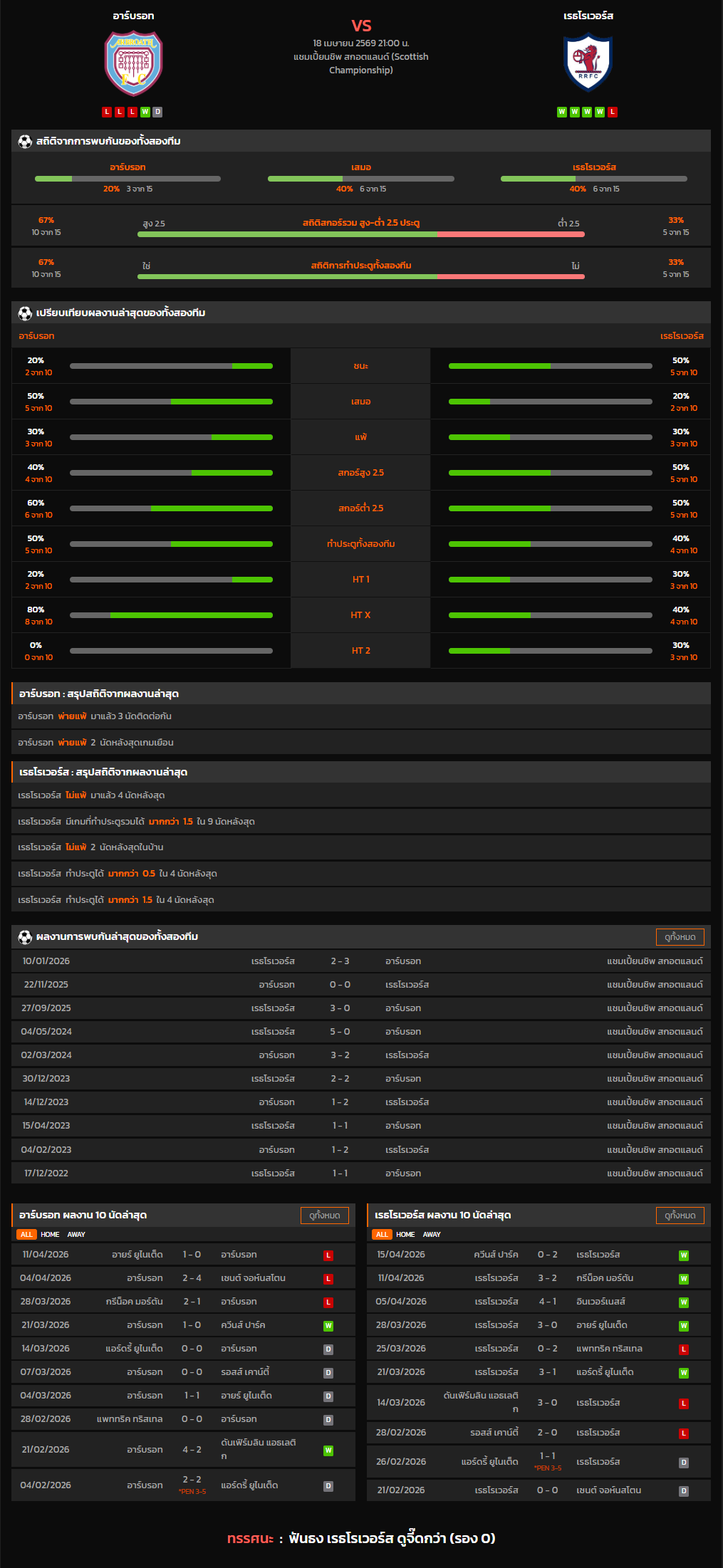 วิเคราะห์บอล สกอตแลนด์ แชมเปี้ยนชิพ 2025-26 อาร์บรอท VS เรธโรเวอร์ส