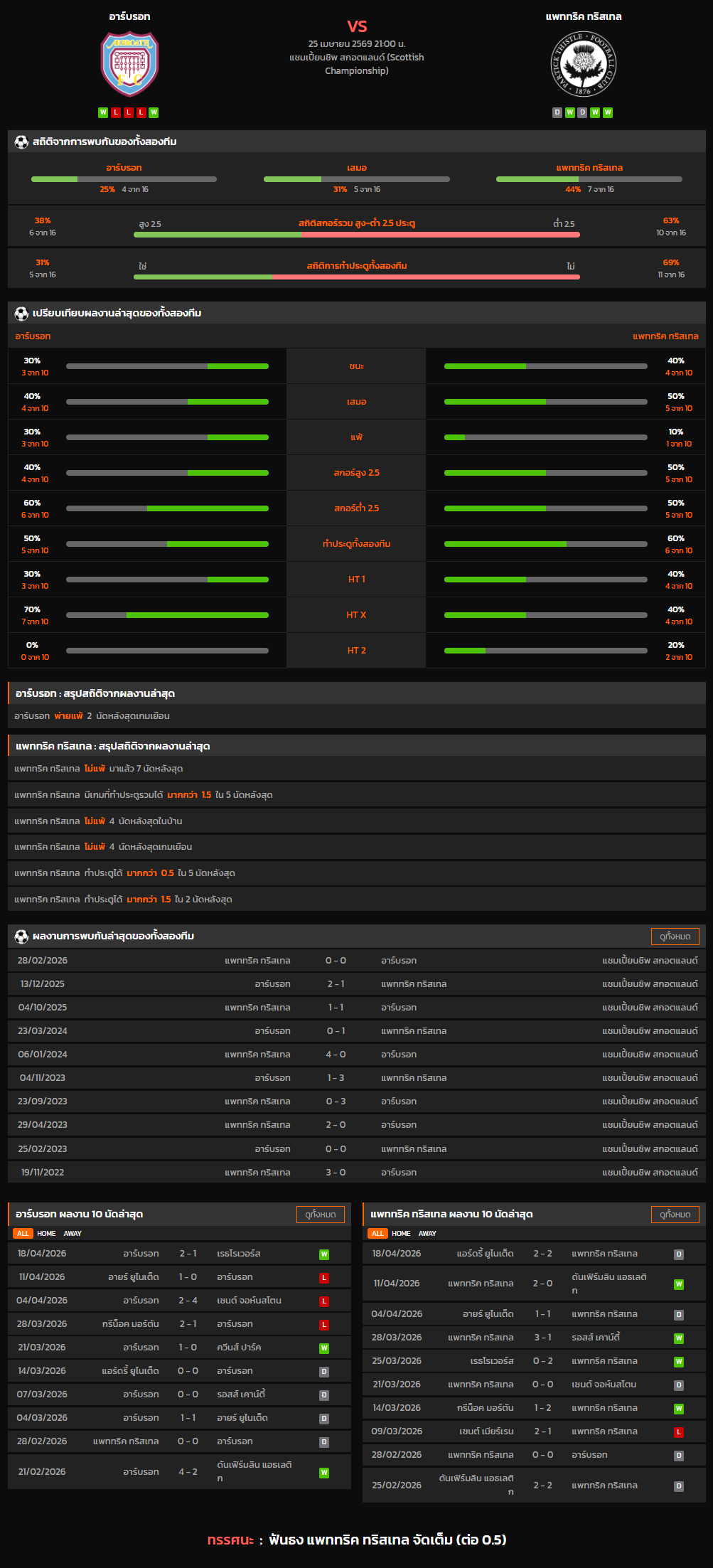 วิเคราะห์บอล สกอตแลนด์ แชมเปี้ยนชิพ 2025-26 อาร์บรอท VS แพททริค ทริสเทล
