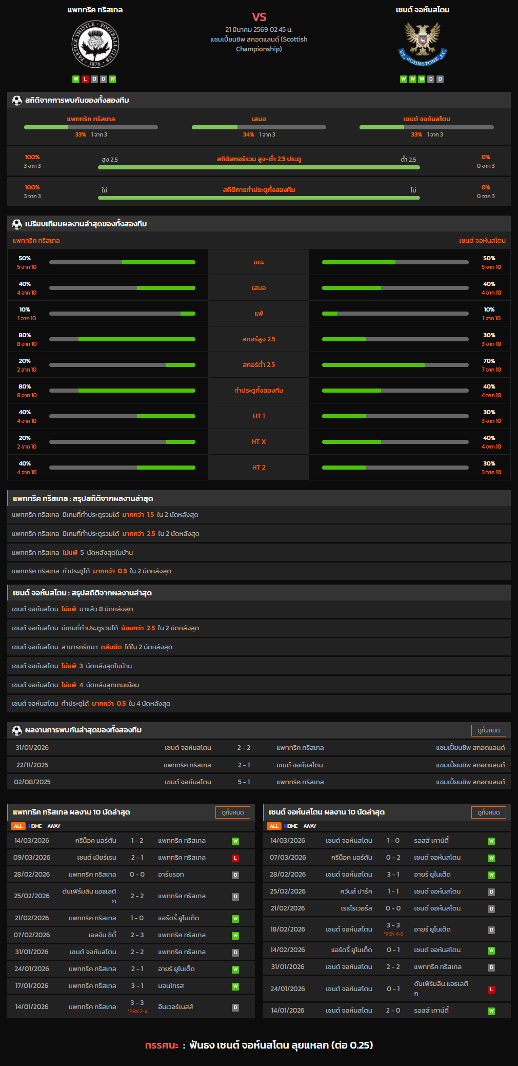 วิเคราะห์บอล สกอตแลนด์ แชมเปี้ยนชิพ 2025-26 แพททริค ทริสเทล VS เซนต์ จอห์นสโตน