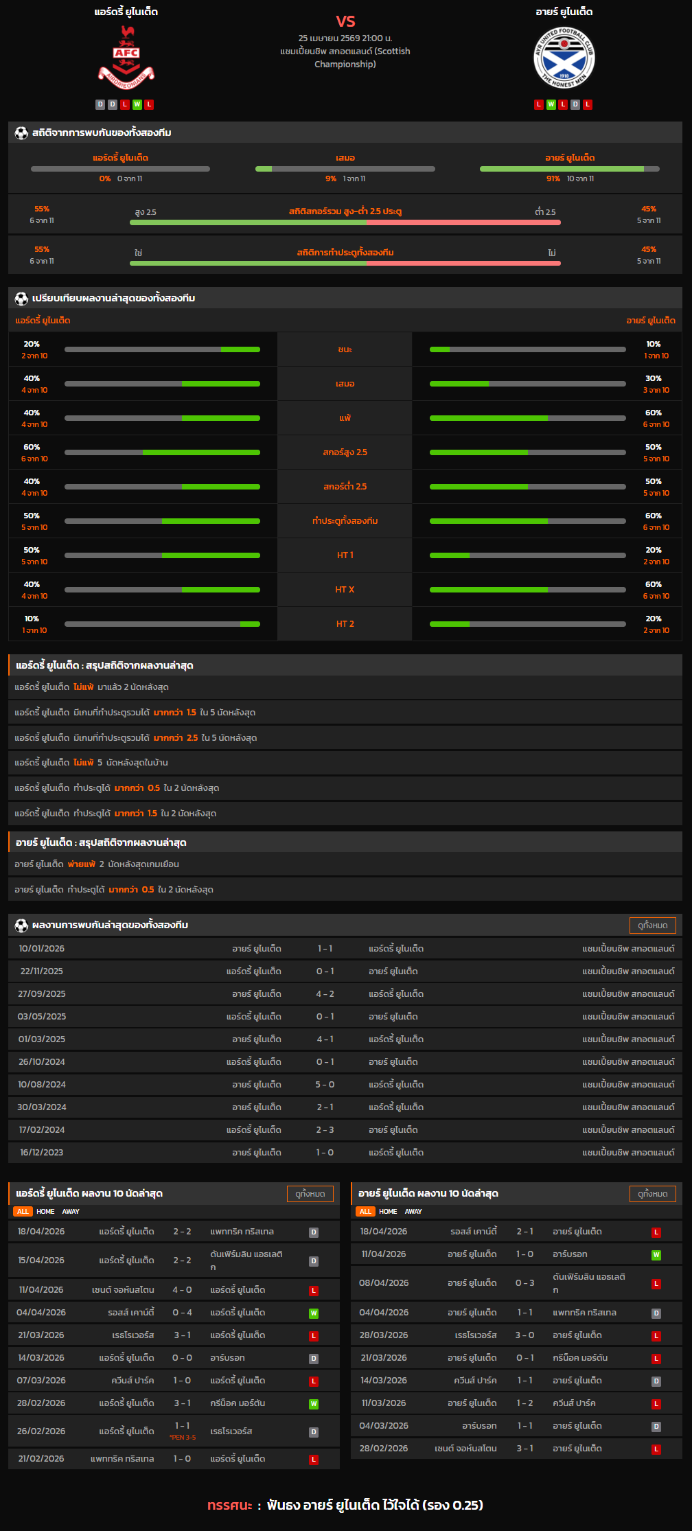 วิเคราะห์บอล สกอตแลนด์ แชมเปี้ยนชิพ 2025-26 แอร์ดรี้ ยูไนเต็ด VS อายร์ ยูไนเต็ด