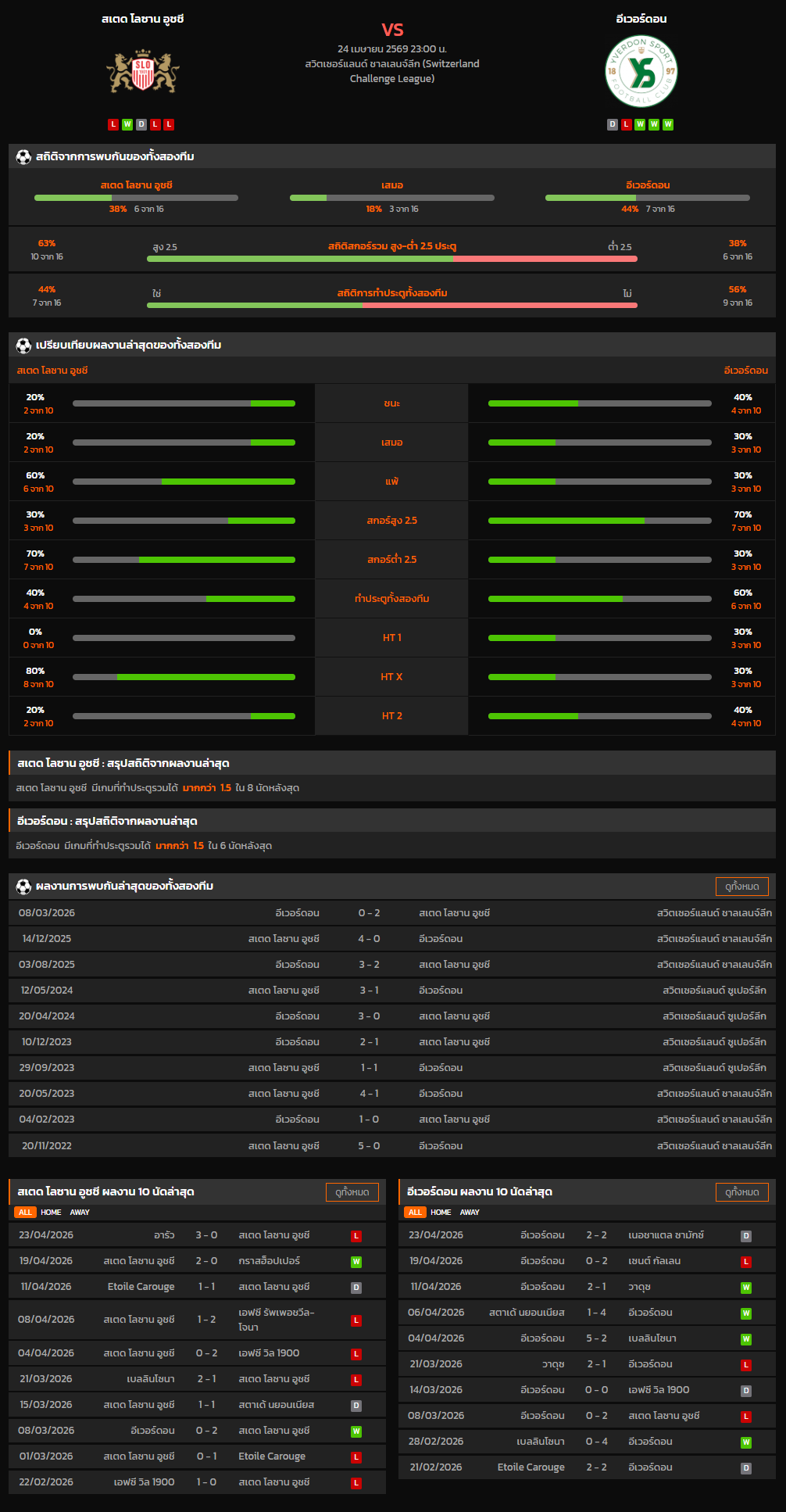วิเคราะห์บอล สวิตเซอร์แลนด์ ดิวิชั่น 2 2025-26 สเตด โลซาน อูชชี VS อีเวอร์ดอน