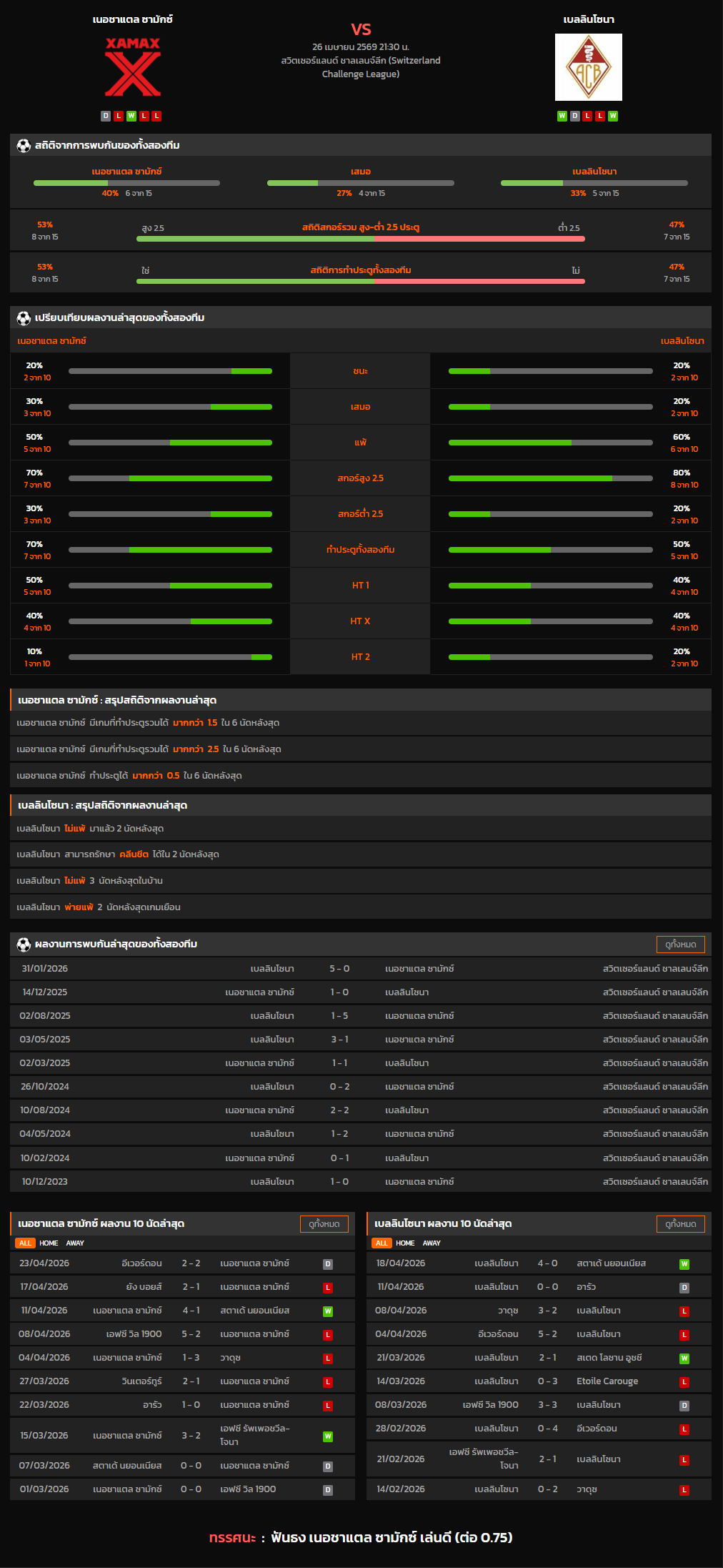 วิเคราะห์บอล สวิตเซอร์แลนด์ ดิวิชั่น 2 2025-26 เนอชาแตล ซามักซ์ VS เบลลินโซนา