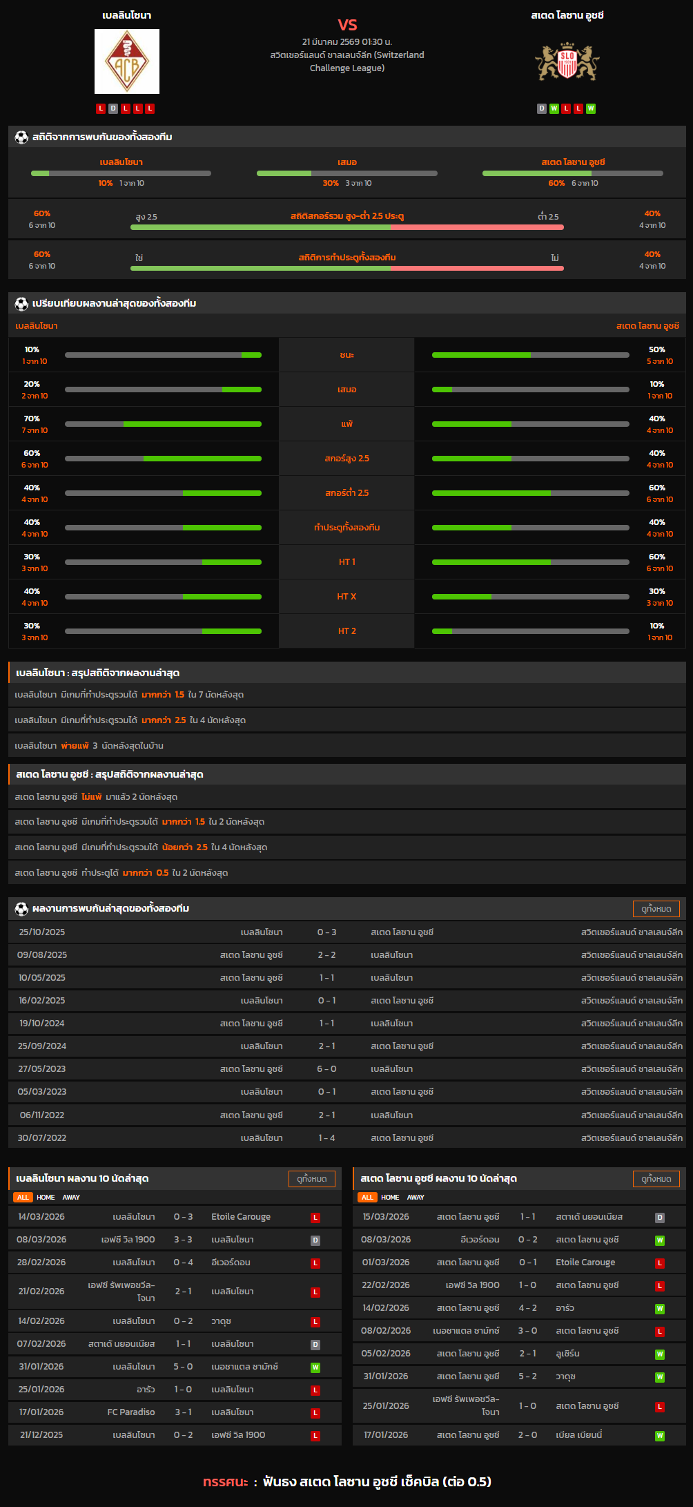 วิเคราะห์บอล สวิตเซอร์แลนด์ ดิวิชั่น 2 2025-26 เบลลินโซนา VS สเตด โลซาน อูชชี