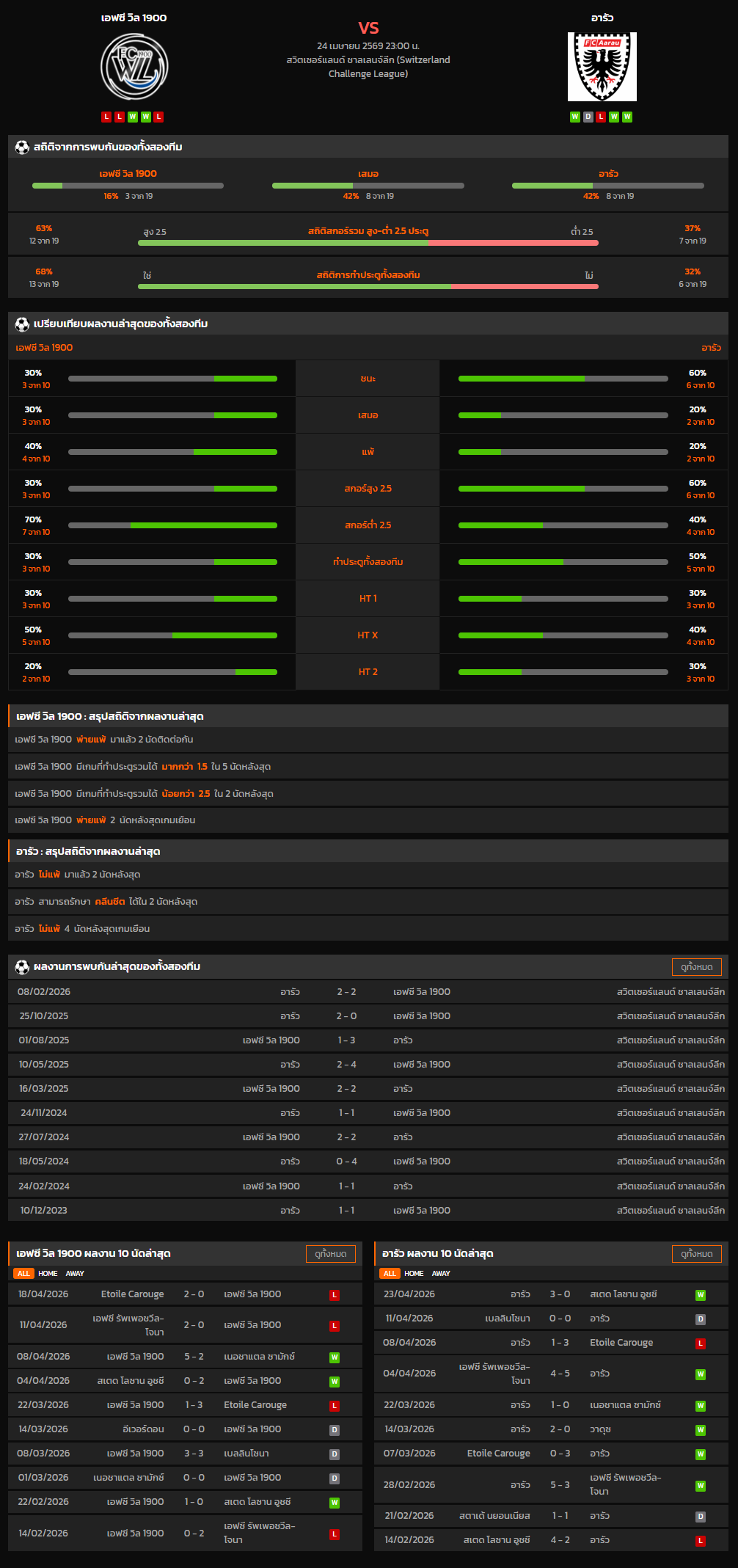 วิเคราะห์บอล สวิตเซอร์แลนด์ ดิวิชั่น 2 2025-26 เอฟซี วิล 1900 VS อารัว