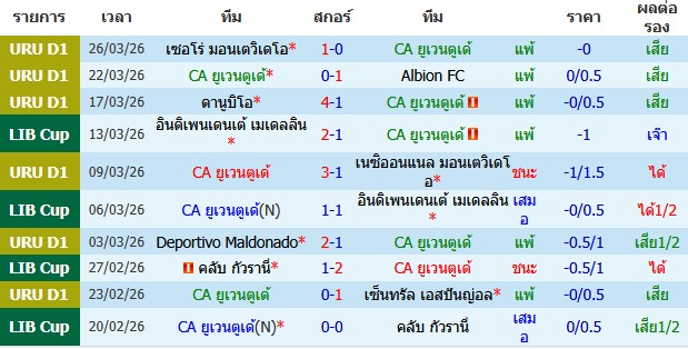 ซีเอ ยูเวนตูเด้ เตรียมเปิดสนาม Estadio Campeones Olímpicos de Florida ต้อนรับการมาเยือนของทีม บอสตัน ริเวอร์ โดยเจ้าบ้าน ซีเอ ยูเวนตูเด้ ของกุนซือ เซบาสเตียน เมนเดซ ปัจจุบันหล่นลงไปอยู่อันดับที่ 16 ซึ่งเป็นอันดับสุดท้ายของตาราง มีเพียง 4 คะแนนจากการลงสนาม 8 นัด ฟอร์มล่าสุดยังคงย่ำแย่ต่อเนื่อง จุดอ่อนที่เห็นได้ชัดคือเกมรับที่เปราะบางที่สุดในลีก โดยเสียไปถึง 13 ประตู อย่างไรก็ตาม พวกเขายังพอมีทีเด็ดในเกมรุกอยู่บ้าง นำโดย โรดริโก้ เปราลต้า มิดฟิลด์ตัวเก่งที่ทำผลงานส่วนตัวได้ค่อนข้างดี และ โจนาธาน อูร์เรตาวิสคาย่า ปีกจอมเก๋า ทางฝั่ง บอสตัน ริเวอร์ เดินทางมาเยือนด้วยสถานการณ์ที่ระส่ำระสายไม่แพ้กัน โดยปัจจุบันรั้งอันดับที่ 14 มี 5 คะแนนจาก 8 นัด จุดเปลี่ยนสำคัญคือสโมสรเพิ่งตัดสินใจแยกทางกับกุนซือ อิสราเอล ดามอนเต้ เมื่อกลางเดือนมีนาคมที่ผ่านมาหลังจากทำผลงานย่ำแย่ชนะเพียงนัดเดียวจาก 7 เกม ปัญหาหลักของทีมคือ เกมรุกที่ฝืดสนิท โดยยิงได้เพียง 3 ประตูตลอดทั้งฤดูกาล ซึ่งน้อยที่สุดในลีก ดูแล้วเกมนี้ น่าจะเป็นเกมที่อึดอัดและเน้นผลการแข่งขันเป็นหลัก เนื่องจากทั้งสองทีมต่างอยู่ในช่วงวิกฤต ยูเวนตูเด้ ได้เปรียบในแง่ของการเล่นในบ้านและมีสถิติการยิงประตูที่ดูดีกว่าเล็กน้อย จึงน่าจะหาทางเบียดได้