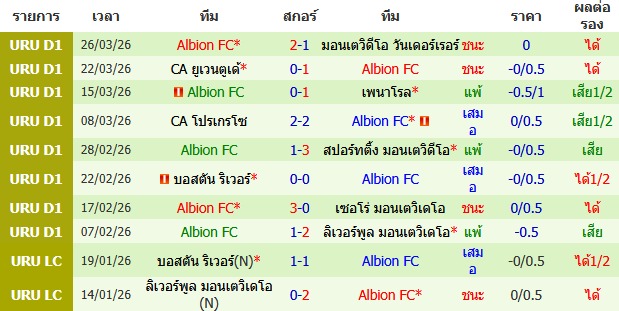 วิเคราะห์บอล อุรุกวัย ดิวิชั่น 1 2025-26 เดเฟนซอร์ สปอร์ติ้ง VS อัลเบี้ยน เอฟซี