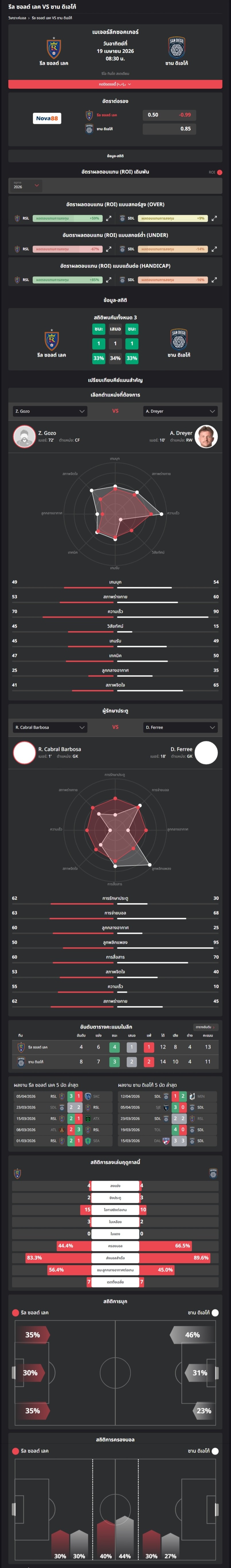 วิเคราะห์บอล อเมริกา เมเจอร์ลีก 2026 รีล ซอลต์ เลค VS ซาน ดิเอโก้