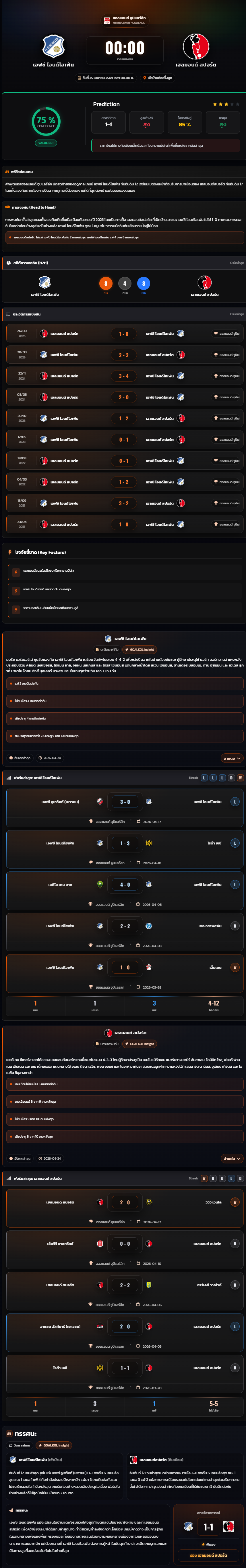 วิเคราะห์บอล ฮอลแลนด์ ดิวิชั่น 2 2025-26 เอฟซี ไอนด์โฮเฟ่น vs เฮลมอนด์ สปอร์ต