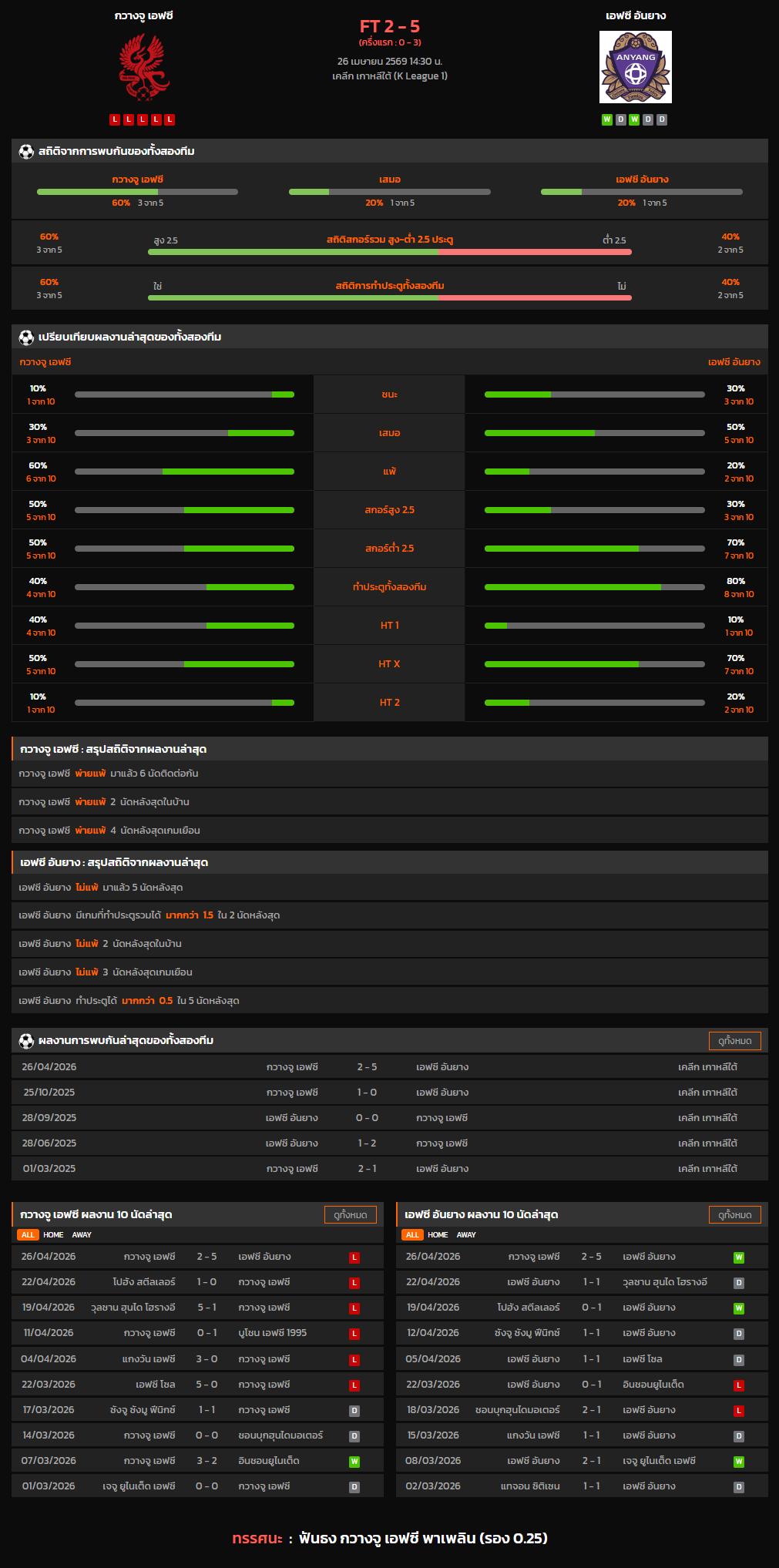 วิเคราะห์บอล เกาหลี ดิวิชั่น 1 2025-26 กวางจู เอฟซี VS เอฟซี อันยาง