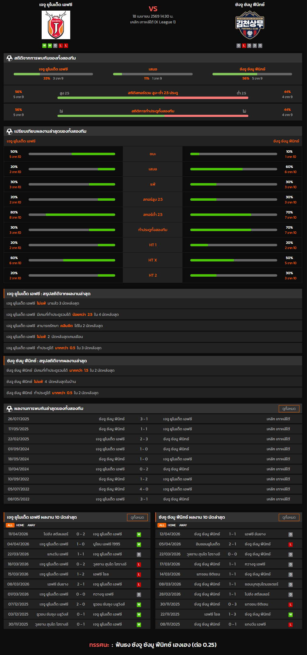 วิเคราะห์บอล เกาหลี ดิวิชั่น 1 2025-26 เจจู ยูไนเต็ด เอฟซี VS ซังจู ซังมู ฟีนิกซ์